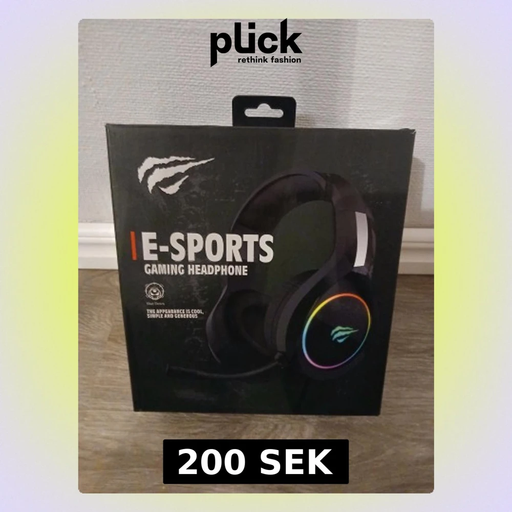Säljer ett svart gaming headset från Havit med RGB-belysning runt öronkåporna. Over-ear design med mjuka kuddar och justerbart huvudband. Kabelanslutning och inbyggd mikrofon, perfekt för gaming och e-sport.Går till PC