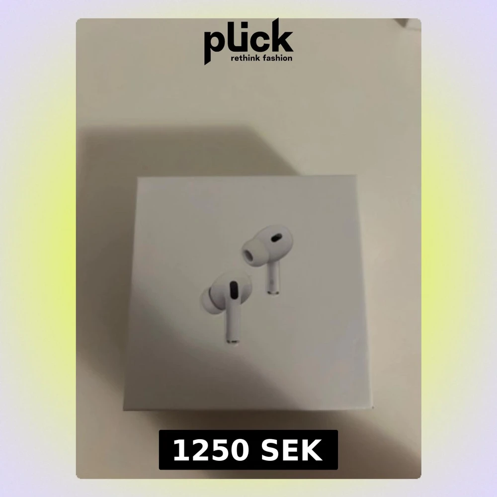 Säljer ett par vita Apple AirPods Pro med stilren design och silikonproppar för bästa passform. Hörlurarna är trådlösa och levereras i originalförpackning med laddningskabel och tillbehör. Perfekta för musik, samtal och träning.