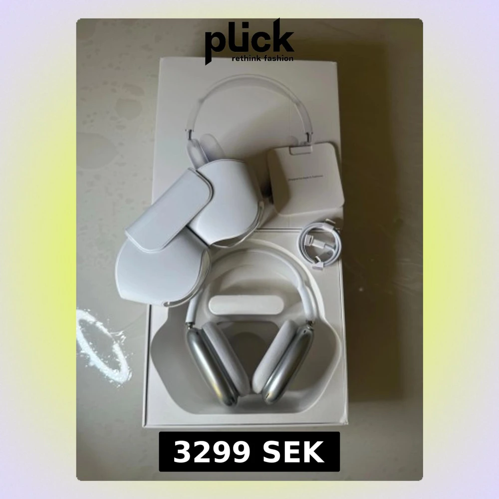 Snygga Apple AirPods Max i silver med en stilren design. Over-ear-modell med mjuka mesh-kuddar och justerbart huvudband i aluminium och textil. Kommer med smart case och laddningskabel. Perfekta för musik, gaming eller film med grym ljudkvalitet.