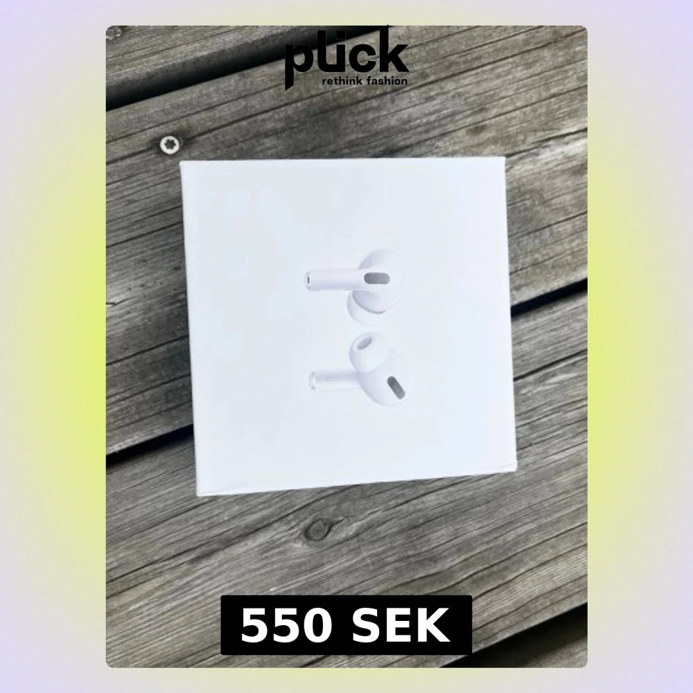 Säljer ett par vita Apple AirPods Pro med stilren design och silikonproppar för bästa passform. Hörlurarna är trådlösa och levereras i originalförpackning. Perfekta för dig som vill ha grymt ljud och smidig anslutning till din iPhone eller andra Apple-enheter.
