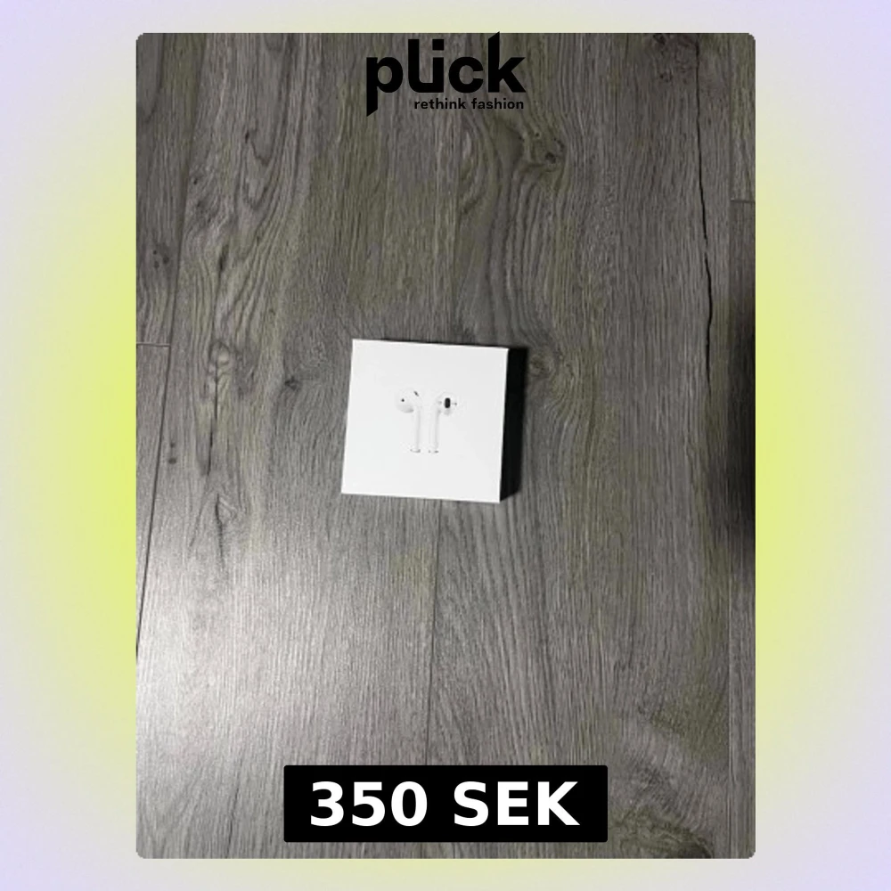 Säljer ett par vita Apple AirPods i originalförpackning. Trådlösa in-ear hörlurar med laddningsetui. Snygg och stilren design i plast, perfekt för musik, samtal och vardagsbruk. Passar till alla Apple-enheter med Bluetooth. KVITTO FINNS