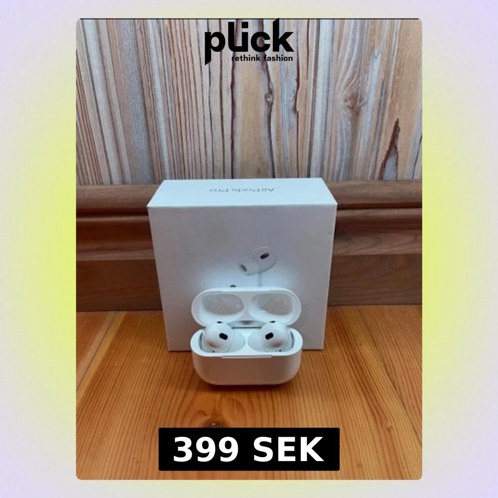 Säljer ett par vita Apple AirPods Pro med laddningsetui och originalförpackning. Hörlurarna är kompakta, har silikonproppar och levererar grymt ljud. Perfekta för dig som vill ha brusreducering och smidig anslutning till iPhone eller andra Apple-enheter.
