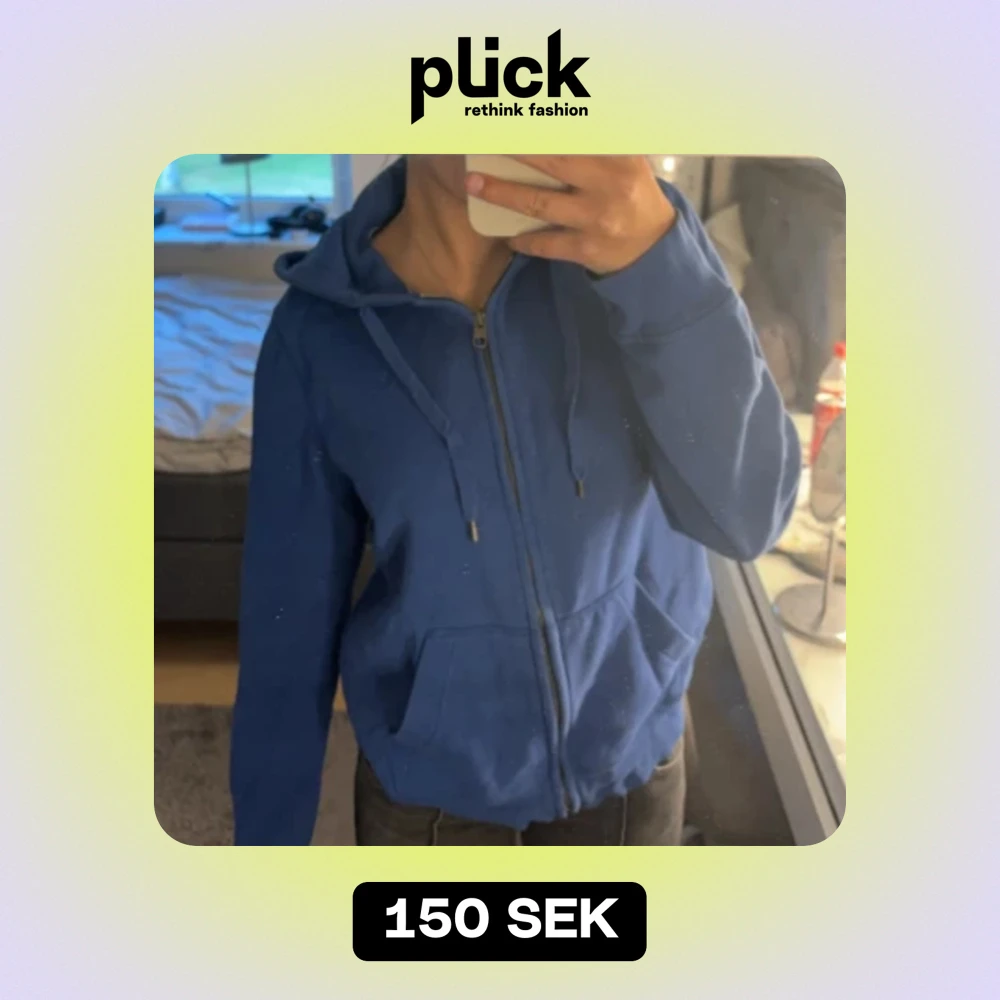 blå jättefin zip hoodie från hm i storlek S och skick 9/10, köpt för rätt längesen