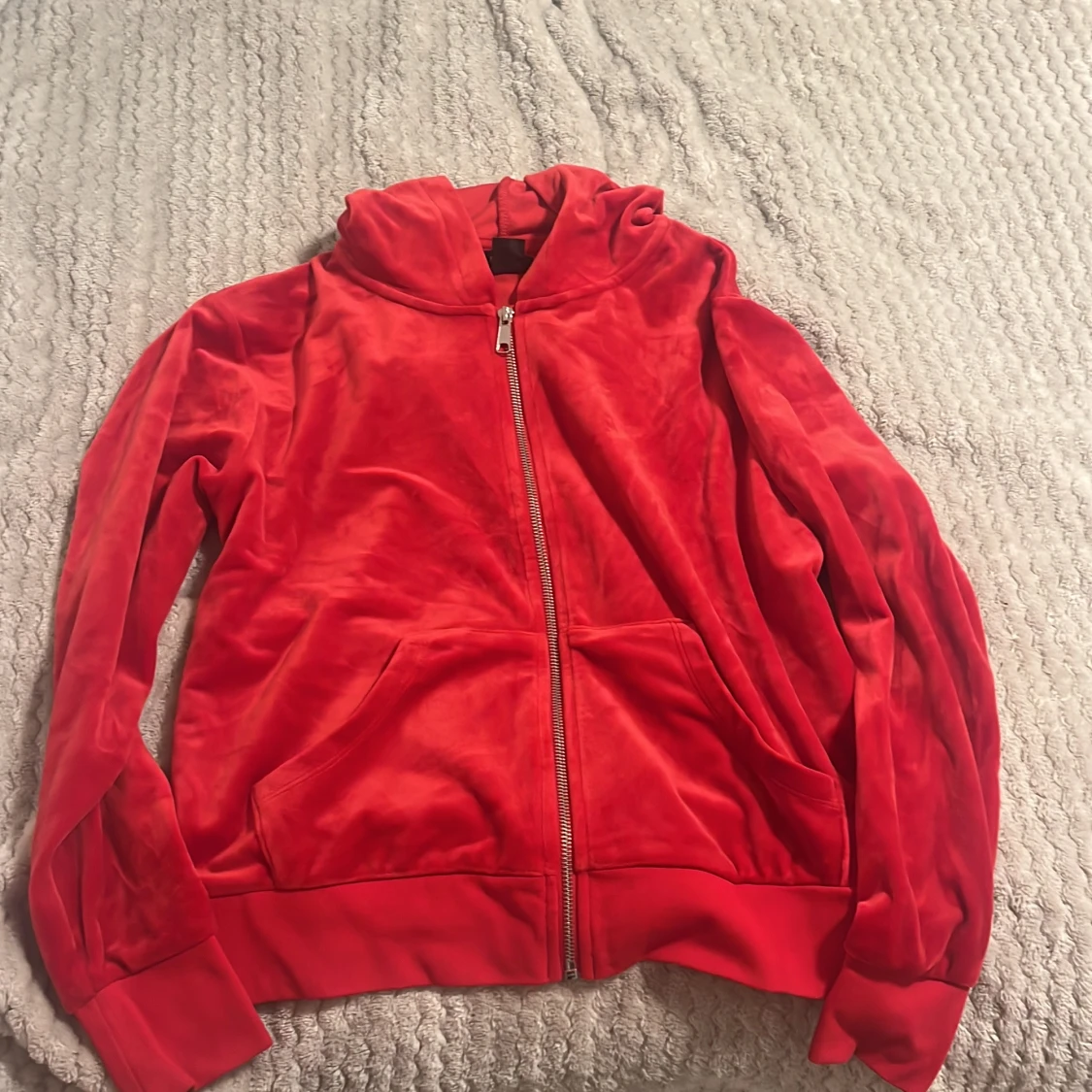 Säljer en mjuk och bekväm röd hoodie med dragkedja framtill. Hoodien har långa ärmar och ribbade muddar vid ärmslut och nederkant. Perfekt för en avslappnad stil. Lite använd. 95% Polyester, 5% Elastan.