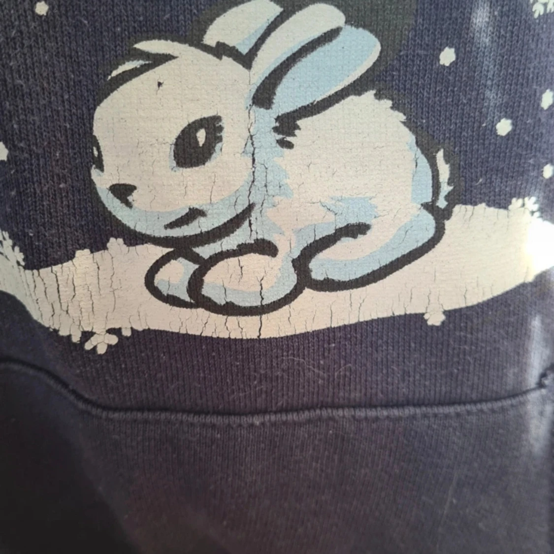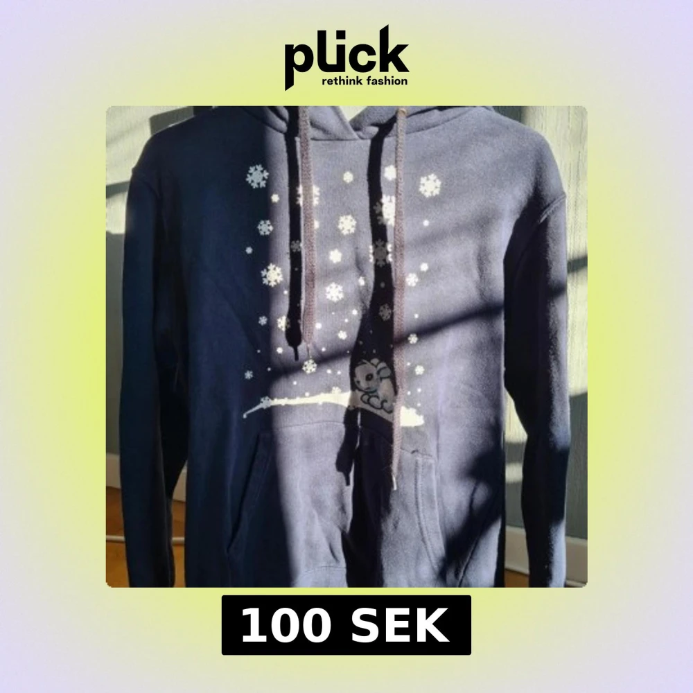 Fin mörkblå hoodie med tryck utav snöflingor och en kanin. Luva bak och ficka fram på magen. Muddar på ärmarna och längst ner på hoodien. Storlek M I använt skick men utan hål och fläckar. Lite spräckning i trycket, se bild nr3 Nypris: 399kr, från EMP Alla kläder rollas innan de skickas då katt finns i hemmet!🐈 #storlekm #hoodie 🇸🇪 #wilmabooksstorlekm