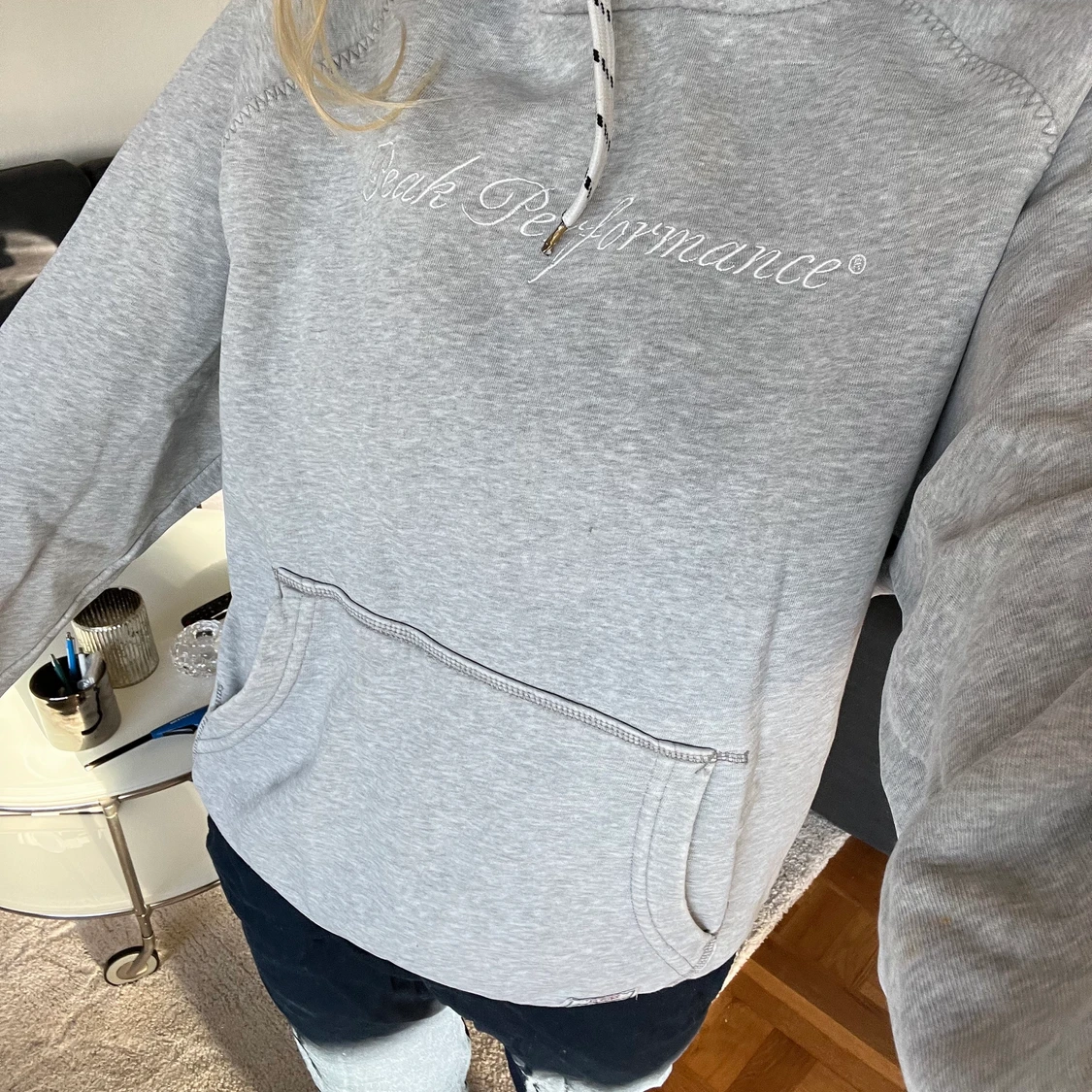 Mysig hoodie från peakperformance. Har små skador vid ärmarnas mudd men i övrigt bra skick. Storlek l men jag skulle säga m typ.