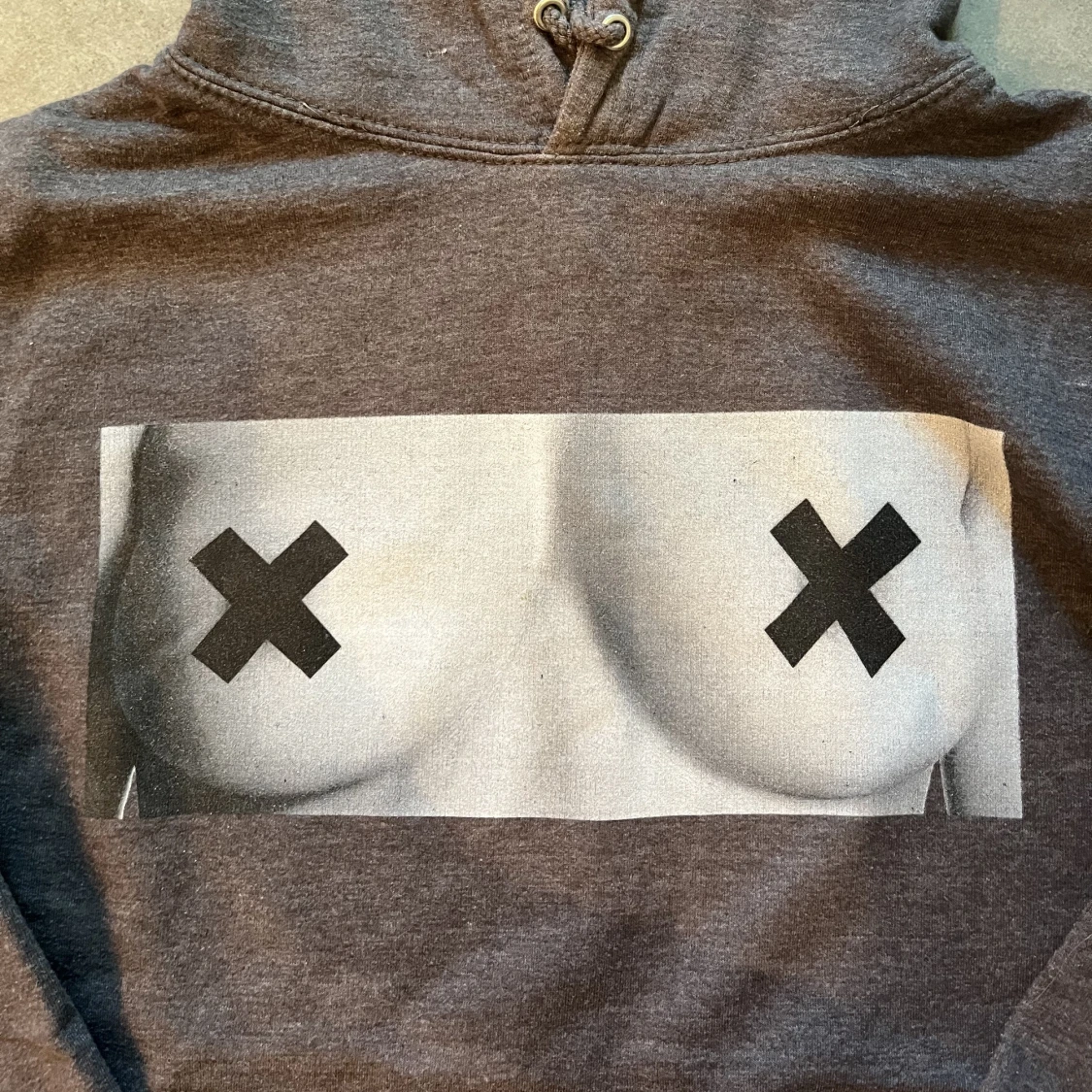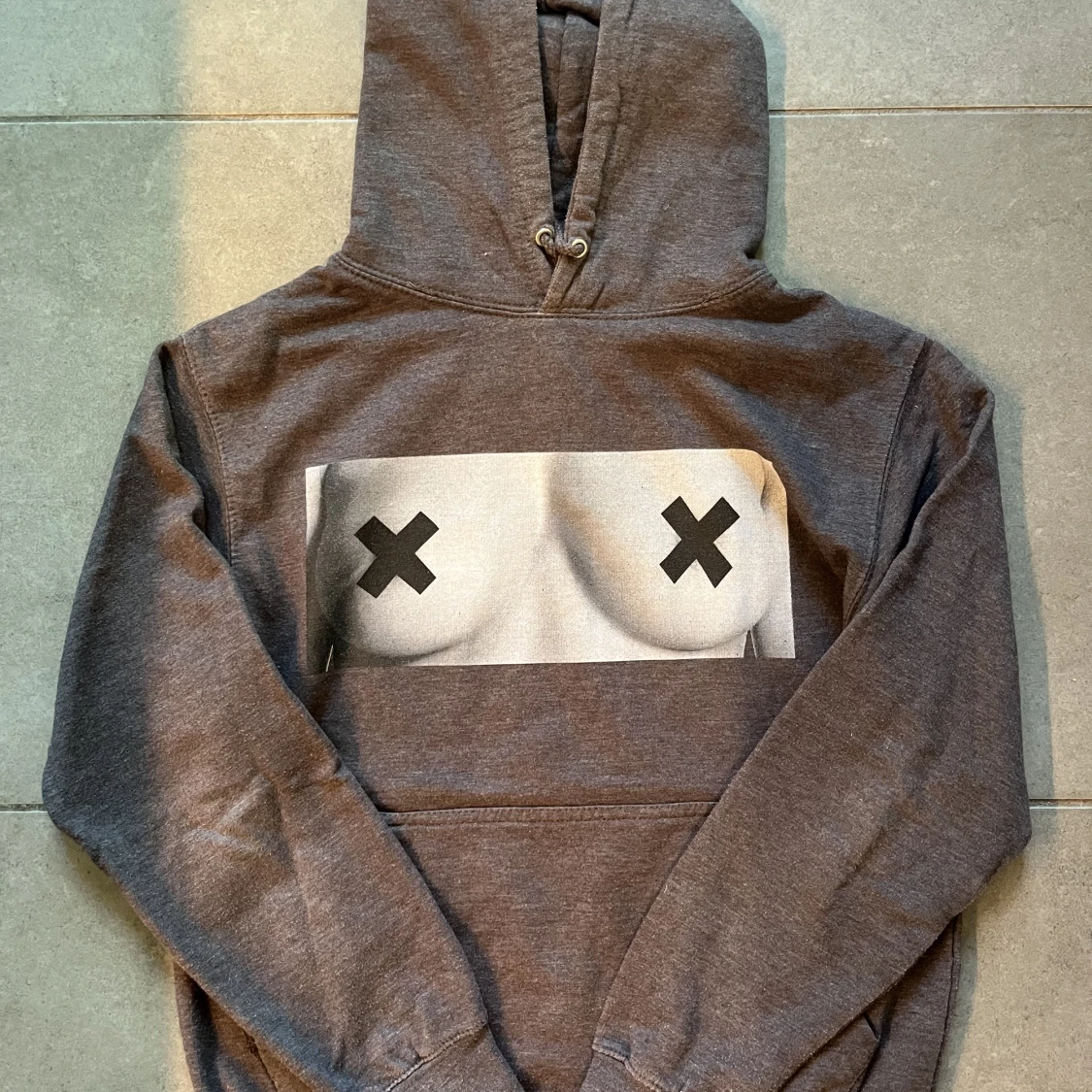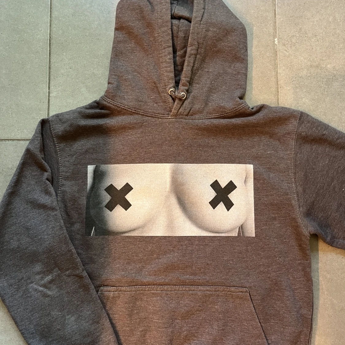 Grå hoodie med tryck, säljer pga för liten