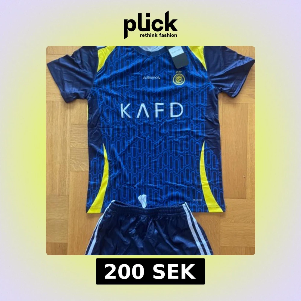 Säljer Al nasr fotbollset har alla storlek från 116-176 har många fler i lager så är du intresserade av att köpa fler samma model så här funkar det du skriver vilken storlek du vill ha innan du köper så skriver du till mig nummer 7 Ronaldo har 25 stycken samma model