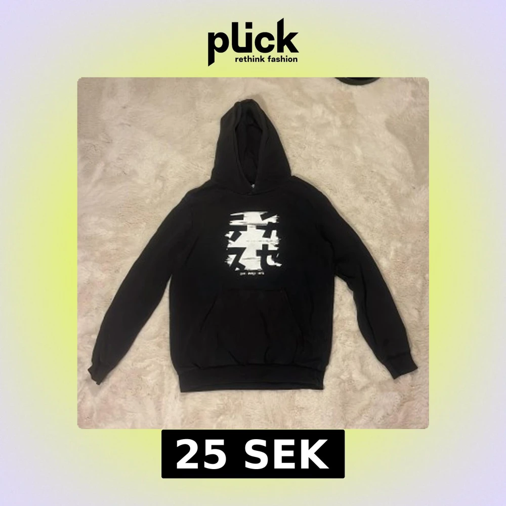 Svart hoodie från warp med stor vit grafisk print på bröstet. Klassisk känguruficka framtill och huva. Mjuk insida och ribbade muddar vid ärmslut och nederkant. Perfekt för dig som gillar streetstyle och vill sticka ut lite extra.