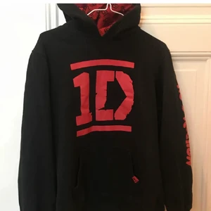 One Direction hoodie som endast har testats på men inte är använd. Hoodien är svart med röda detaljer. Insidan av luvan är röd med små 1D loggor på. Den har även coola detaljer på baksidan. Den är ganska liten i modellen så tänk på det. Storleken är M men skulle snarare säga att den är S/XS