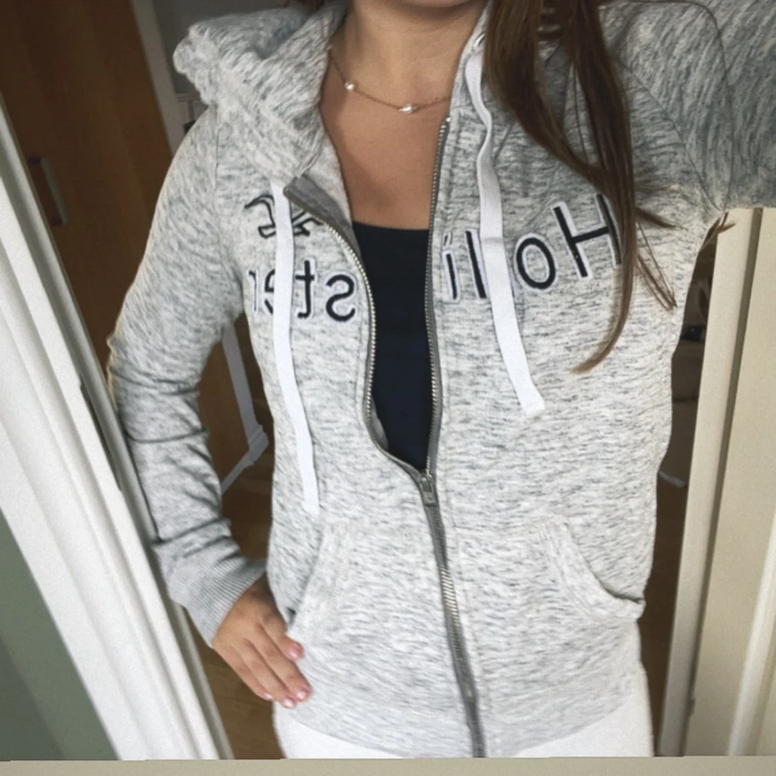 Jätte fin hollister zip up. I ljus grå, jag har andvönd den ett fåtal gånger och den ser helt ny ut!!