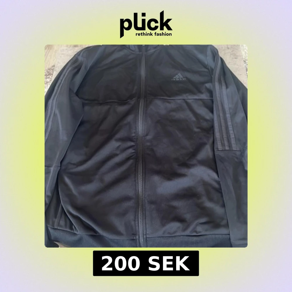 Svart vindjacka från Adidas med klassiska tre ränder längs ärmarna och broderad logga på bröstet. Jackan har hel dragkedja framtill, ribbade muddar och är tillverkad i lätt polyester. Perfekt för dig som gillar sportig stil och streetwear. Nästan aldrig använda! 10/10 skick.