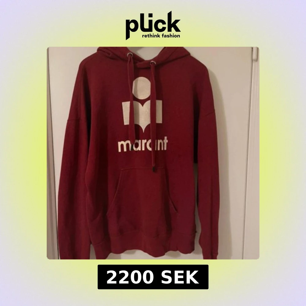 Vinröd hoodie från Isabel Marant Étoile med stor vit logga framtill. Tröjan har huva med snörning och en klassisk känguruficka. Oversized passform och mjukt material som känns riktigt skönt mot huden. Perfekt för en chill och trendig look.