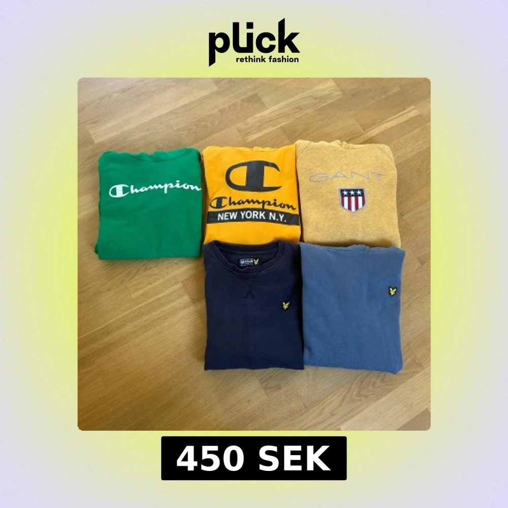 12/13år ungefär 158/164 Olika skick på respektive tröja: Grön Champion - gott skick Gul Champion - gott skick Gul gant - mycket gott skick (använt, fåtal gånger) Ljusblå lyle & scott - gott skick Mörkblå lyle & scott (sweatshirt) - mycket använd Allt för 450kr Fler bilder kan efterfrågas.