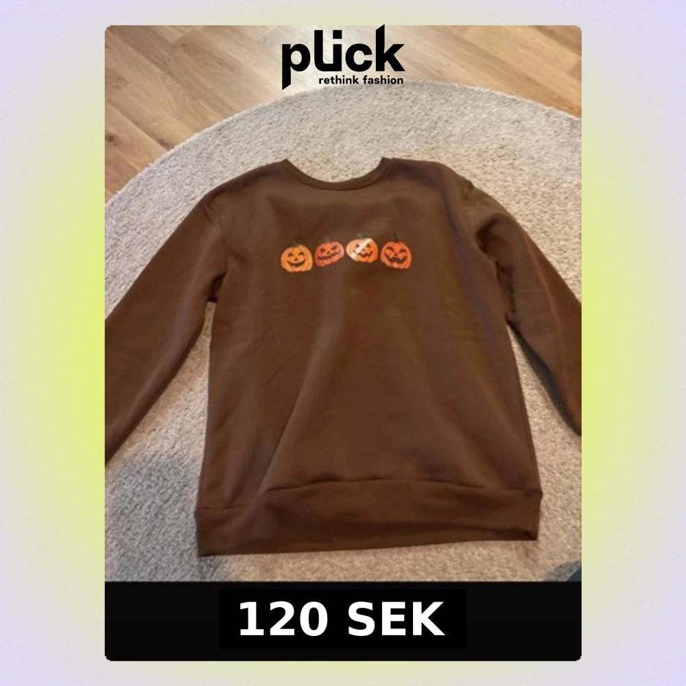 Cool brun sweatshirt med fyra Halloween-pumpor tryckta på bröstet. Tröjan har rund halsringning och långa ärmar. Perfekt för dig som vill ha en höstig vibe och gillar Halloween-tema. Materialet känns mjukt och bekvämt mot huden.