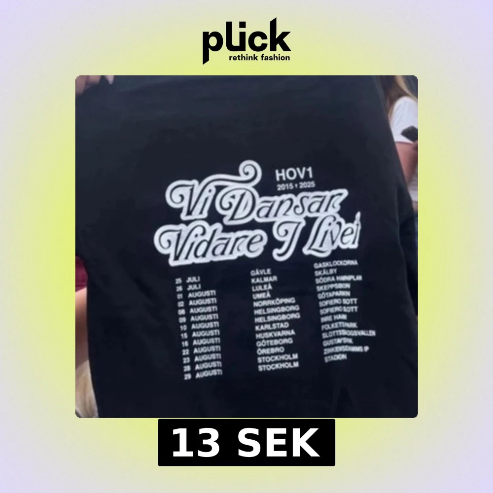 Skriv om ni vet nån som säljer! Vilket pris som helst Svart hoodie från Hov1 med stor vit text på ryggen: 'Vi Dansar Vidare I Livet' och turnédatum samt städer listade under. Klassisk passform och korta ärmar, perfekt för mig som älskar svensk musik och vill visa ditt stöd för bandet.