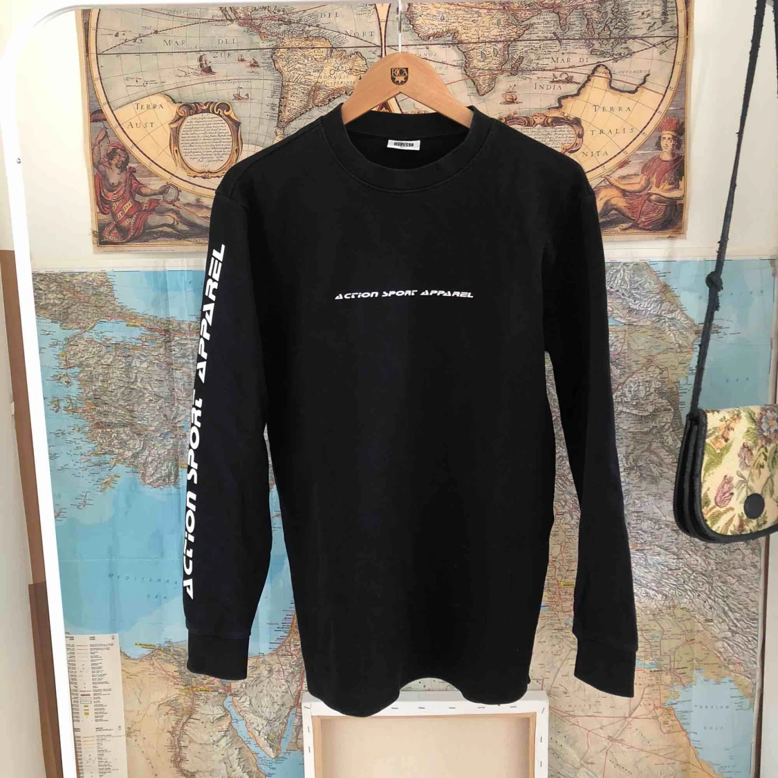 Svart tröja från Weekday med texten Action Sport Apparel över bröst och ärm. I superskick! Frakt tillkommer.