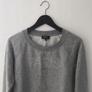 Gråmelerad sweatshirt från APC med broderi, storlek M men är liten i storleken så mer som en S. Använd men bra skick!