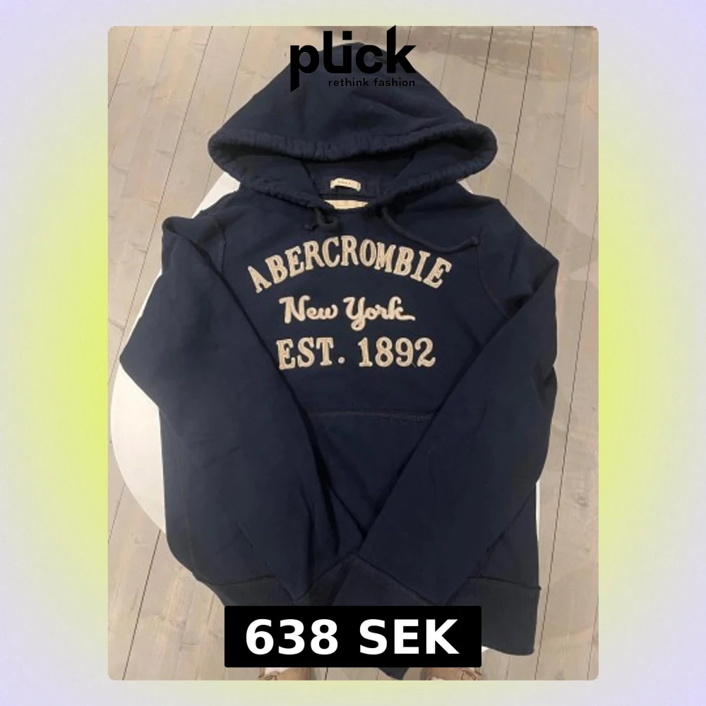 Abercrombie & fitch mörkblå hoodie vintage väldigt sällsynt och unik säljs inte längre. I bra skick 8/10 inget som märks. Storlek Medium pris 638 kr skriv vid frågor 😃