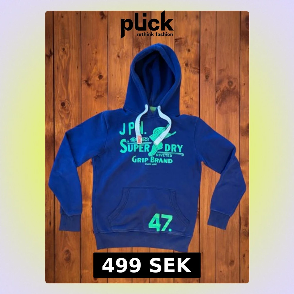 Säljer denna vintage asfeta hoodien från Superdry. Den är riktigt fet och har en snygg design med feta detaljer. Storlek är S och passar som S/M se måtten nedan. B=67cm A=54cm