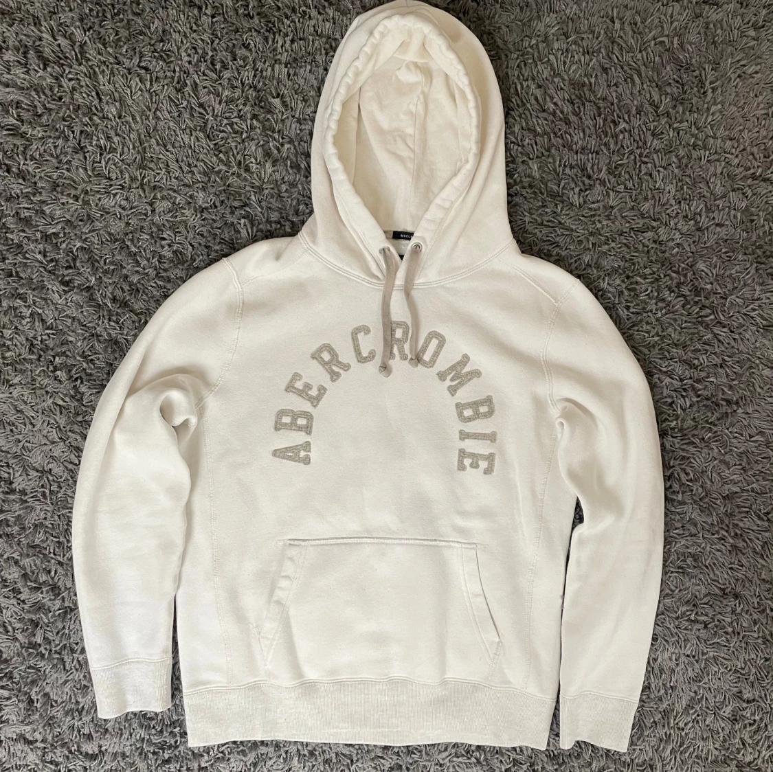 Säljer nu denna sjukt snygga hoodien från Abercrombie! Den är i storlek S men sitter något större. Mycket bra skick utan defekter! Färg: Vit/Cremefärgad, riktigt fet! Hör av dig vid frågor eller funderingar!