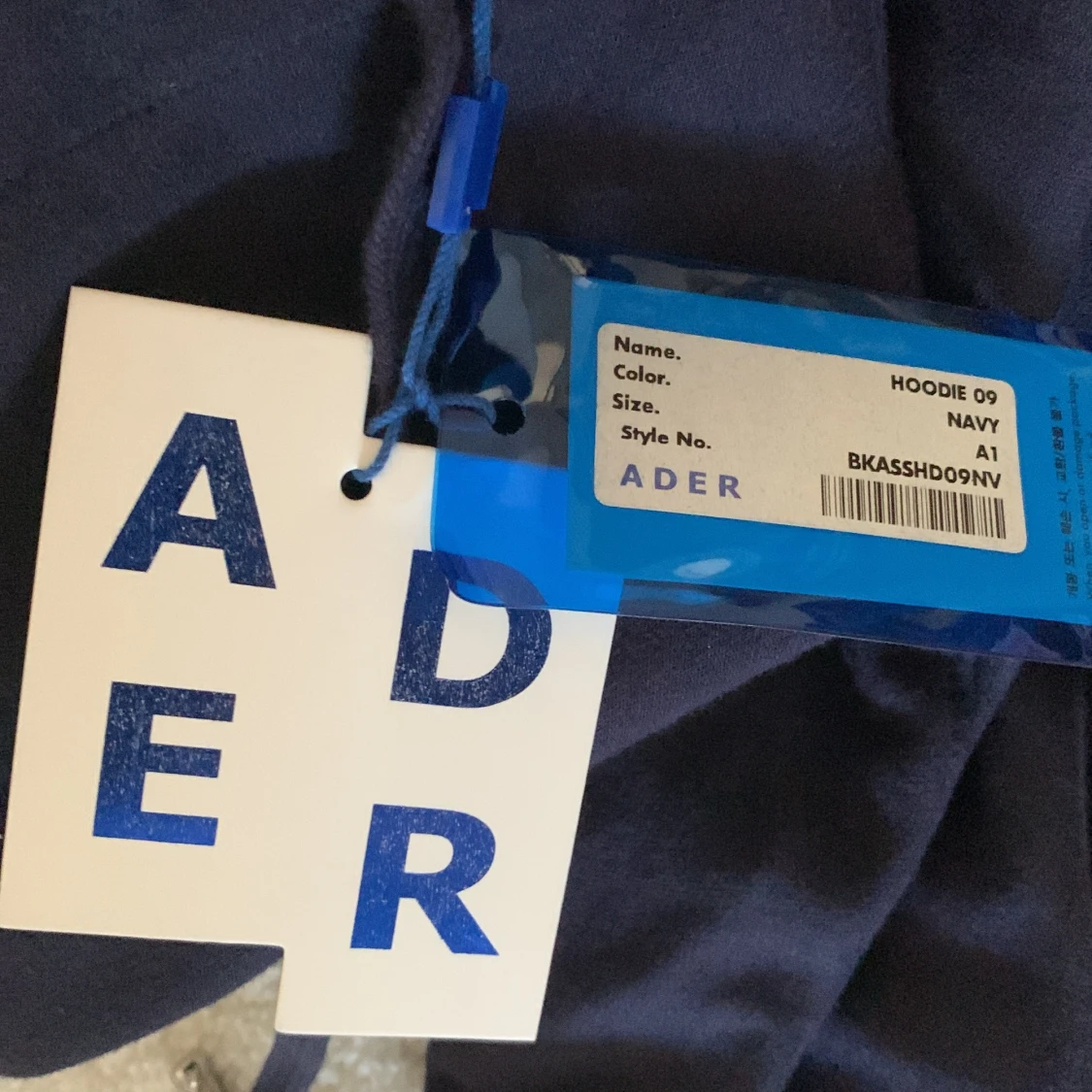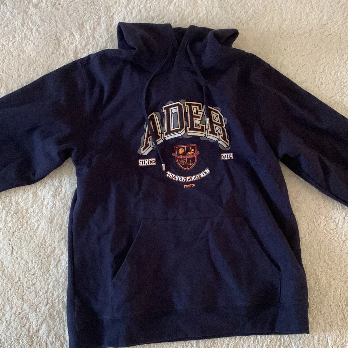 Väldigt skön ADER hoodie. Tröjan är väldigt oversized och är i storlek A1. Köpt helt deadstock från grailed med alla tags kvar. Skriv om ni vill ha fler bilder eller om ni undrar något. Prutbar vid smidig affär.