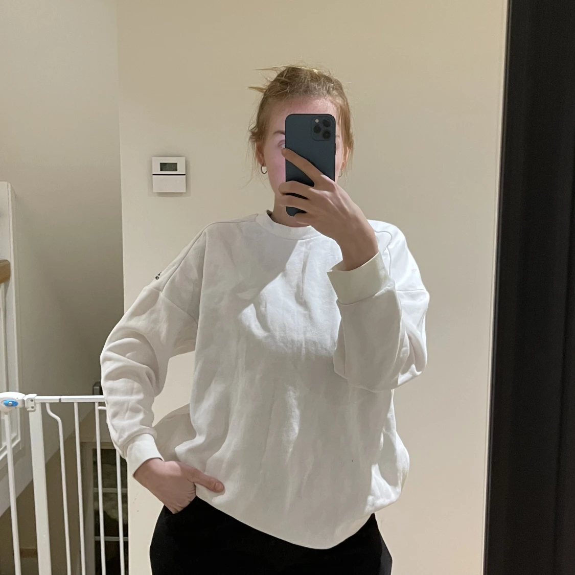Vit, oversized tröja med tryck på ryggen, från adidas i storlek L.
