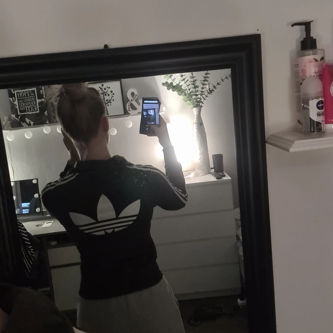Mörk grön Adidas tröja med dragkedja. Inte använd så många gånger och sitter jättefint💕 köparen står för frakt