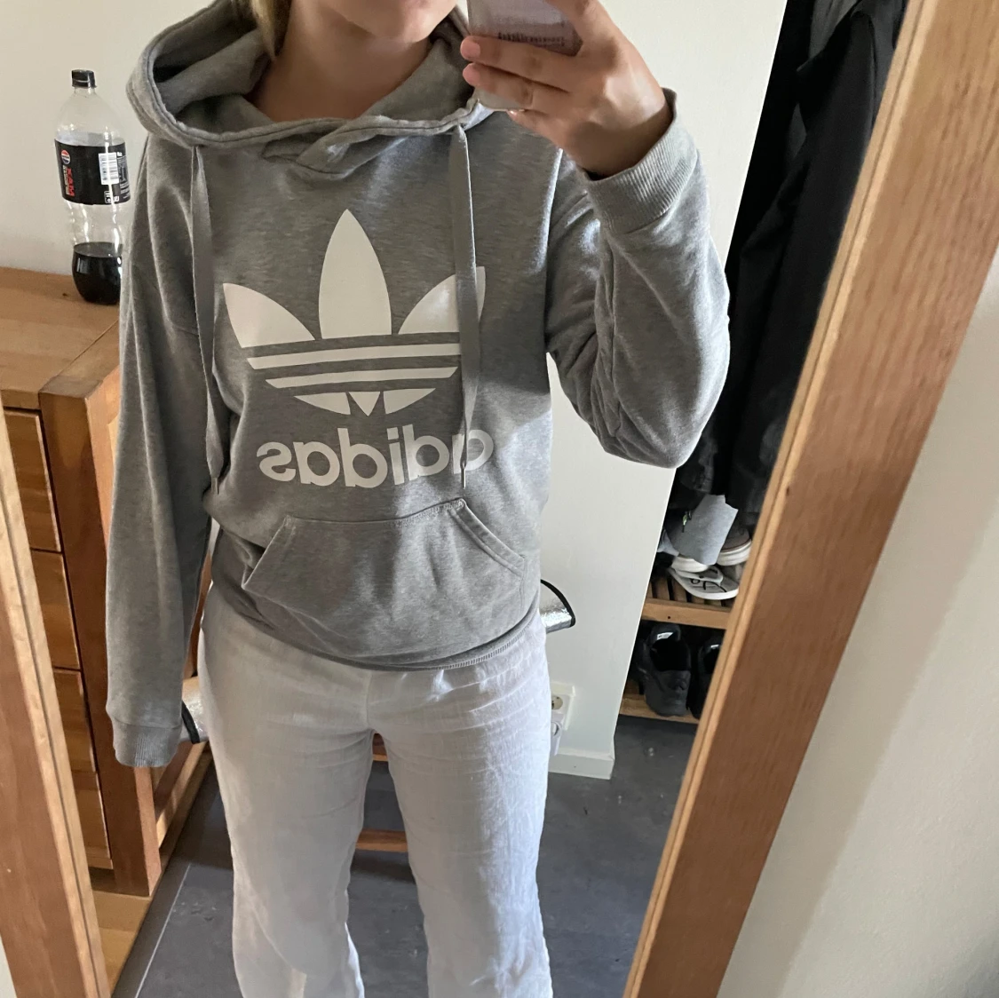 Skön adidas hoodie i bra kvalitet. Perfekt för hösten och vintern och den är lagom i storlek för mig som vanligtvis har S.