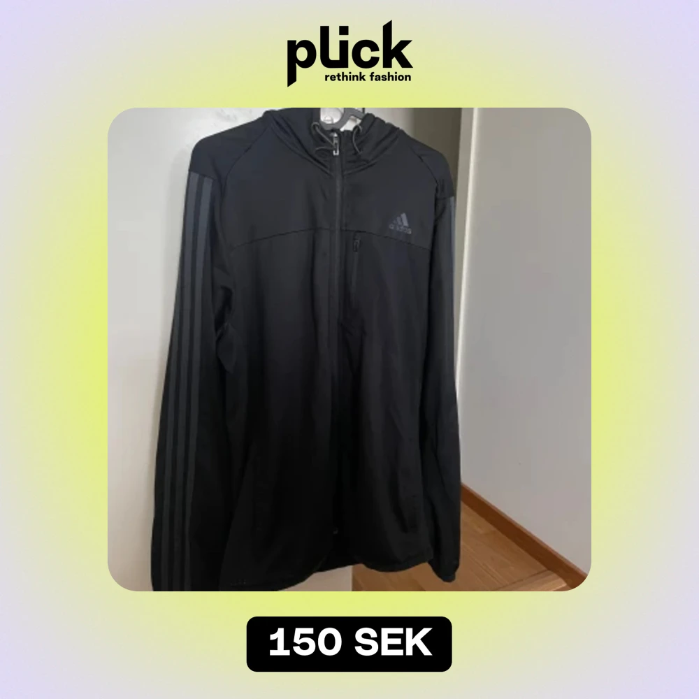 Adidas kofta / hoodie / zip-up med svarta sträck ”Triple black” i storlek L (sitter snyggt oversize för en S-M)