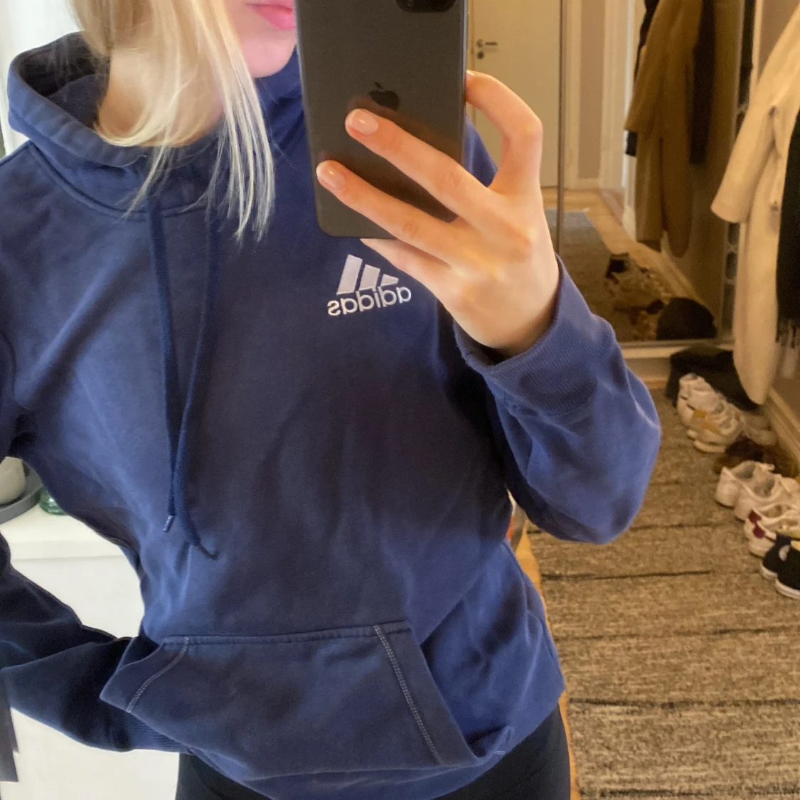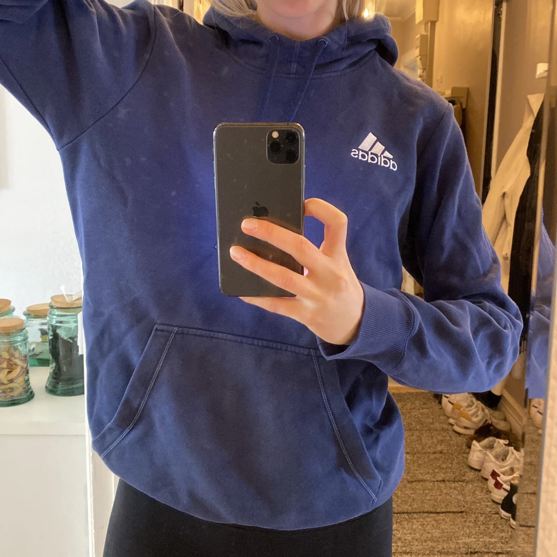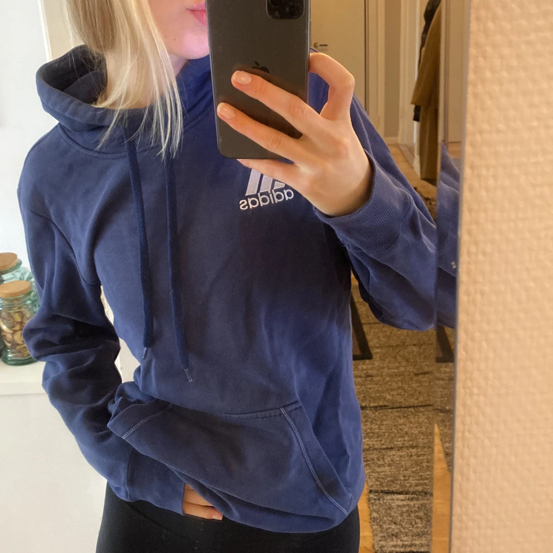 Vintage adidas hoodie i en urtvättad blå färg! Passar perfekt till gymmet eller liknande!💙 Köparen står för frakt!