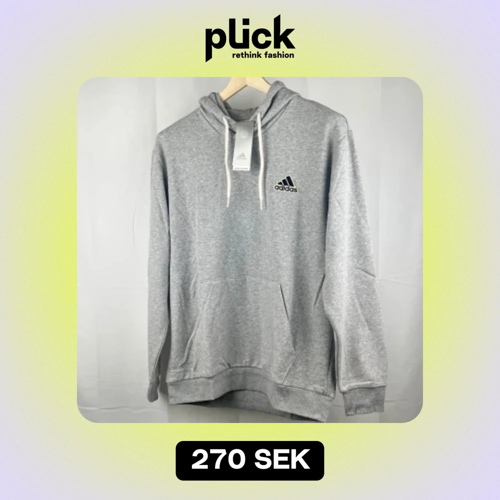 Fräsch oanvänd grå hoodie med ficka vid magen och snöre för att justera luvan. Material 70% Bomull 30% Polyester