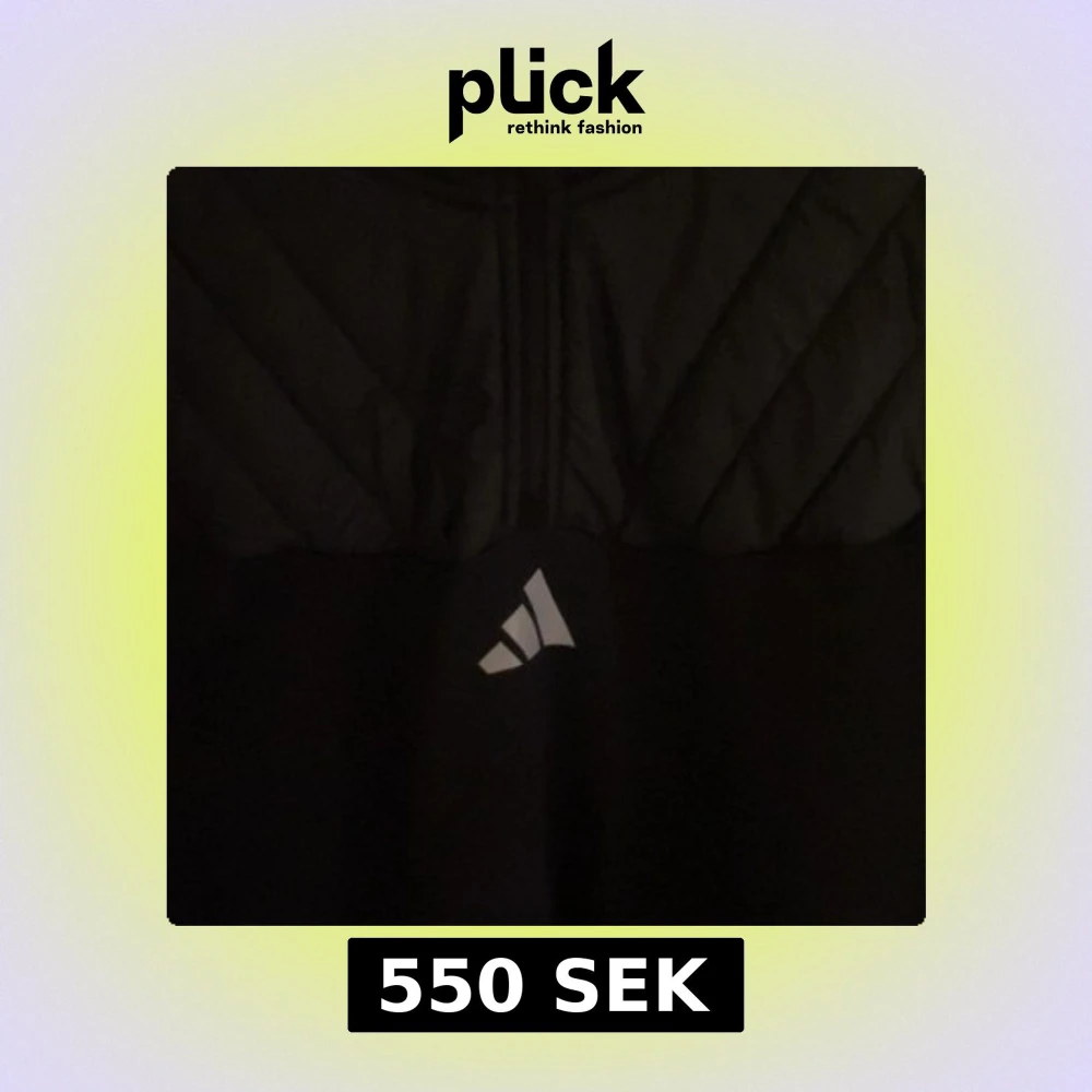 Snygg svart jacka från Adidas med quiltad design upptill och klassiska vita ränder längs ärmarna. Jackan har en dragkedja framtill och är perfekt för en sportig look.