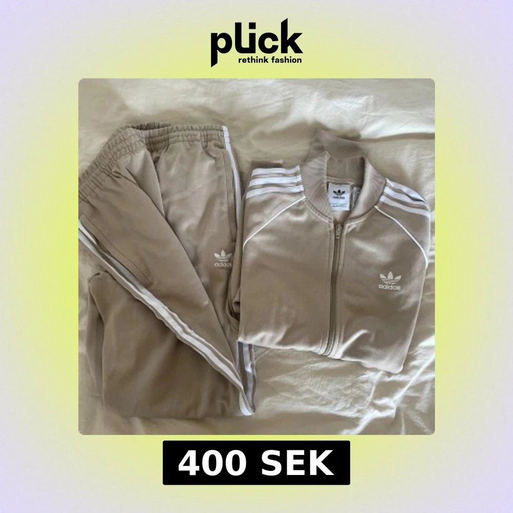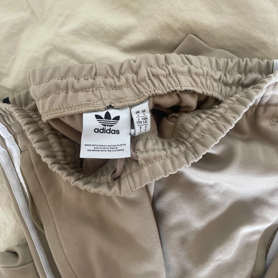 Adidas mjukis-set beige/vit. Tröja i storlek M. Byxor i storlek L. 200kr/styck. 400kr för båda.