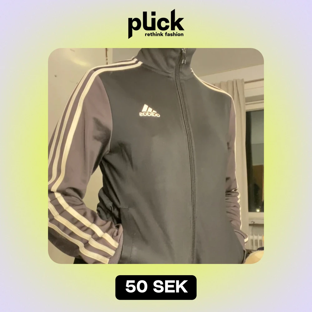 Svart Adidas zip up. Den är i barnstorlek 152/ barn M, men har använt den ändå fast jag är en xs-s och det funkar bra, sitter lite tightare vilken jag tycker ser bättre ut. Den är ganska använd men ändå bra skick.