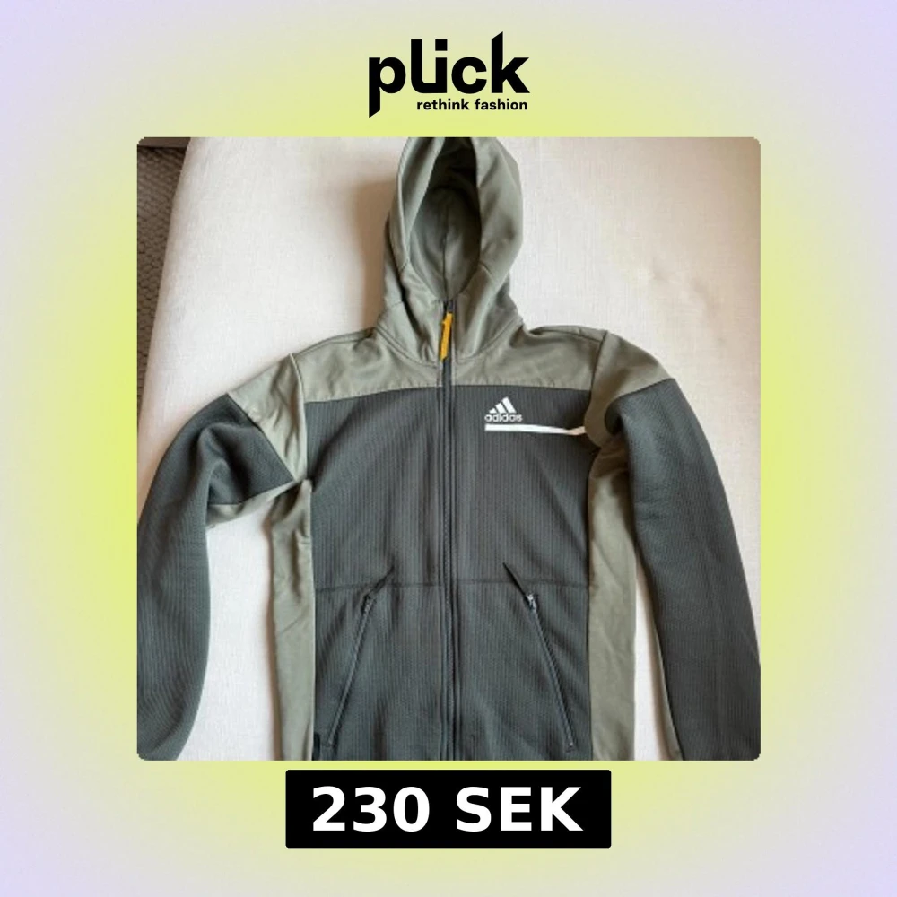 Tröjan har sportig look med vit Adidas-logga och rand på bröstet. Tillverkad i mjuk polyester med strukturerad yta och detaljer i olika gröna nyanser. Mycket bra skick, storlek S men passar även en lite mindre M.