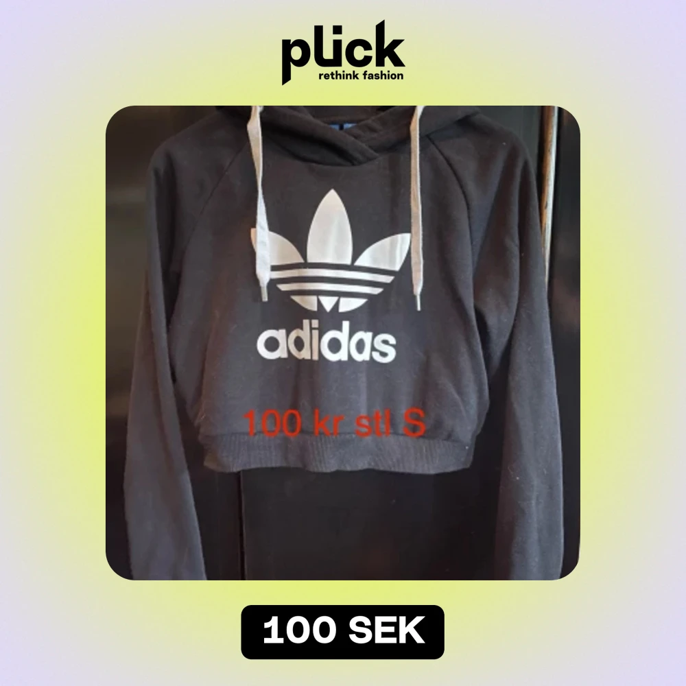 Svart Adidashoodie i stl S. Crop top/magkort. Fint skick, använd fåtal gånger.