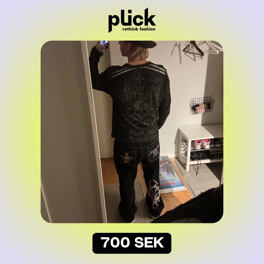 As hård Affliction tröja som är reversible. Kan has ut och in samt som vanligt. Riktigt rare😈🤞🏼 Tar både trades och cash, fraktar samma dag om möjligt. Den är nerkortad i armarna och nertill för den va som en klänning innan. Är 185 o väger 85kg för referens