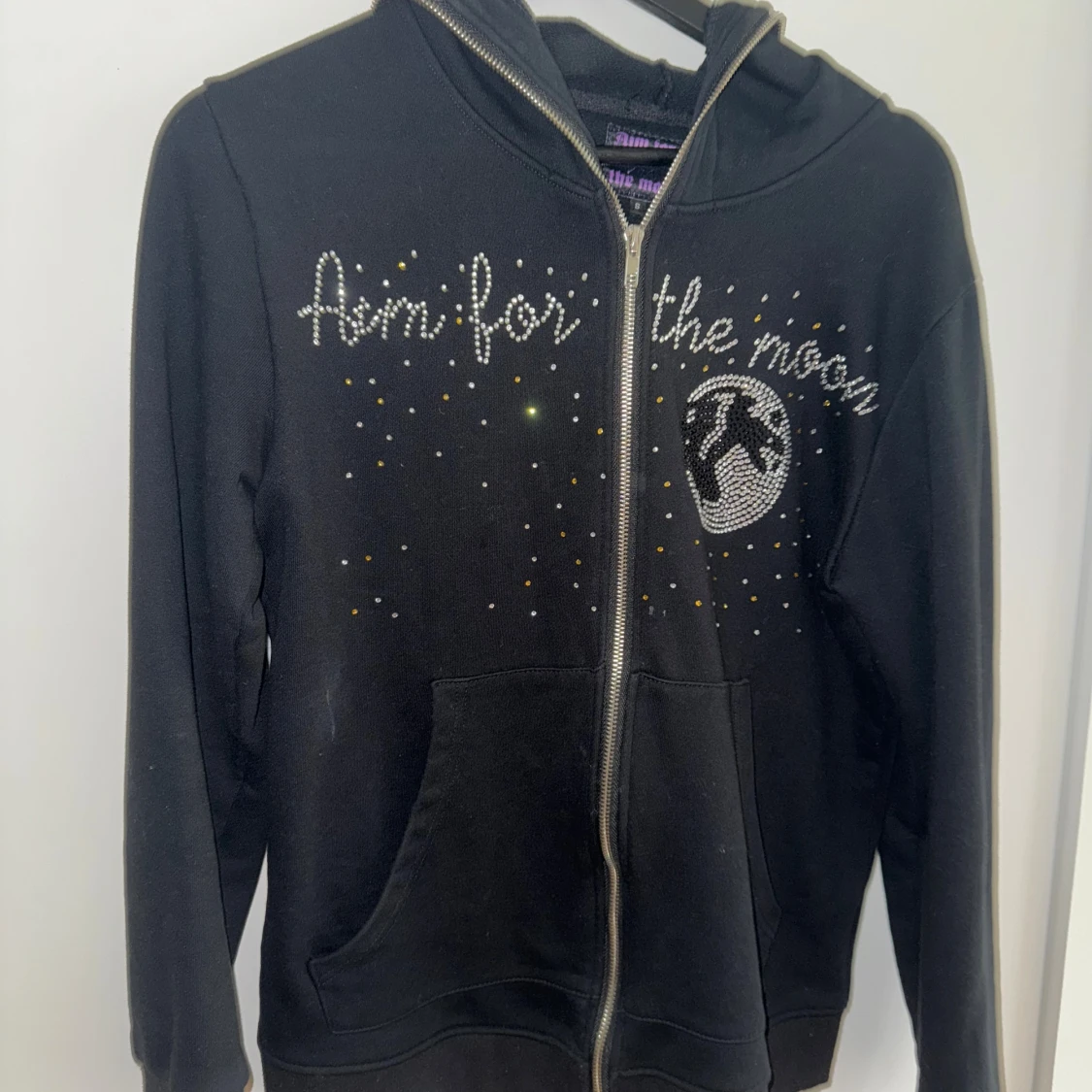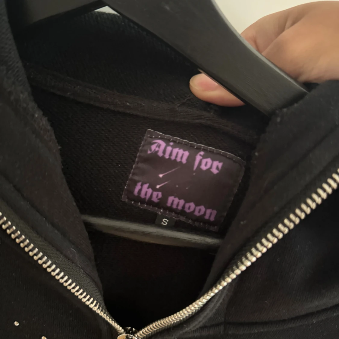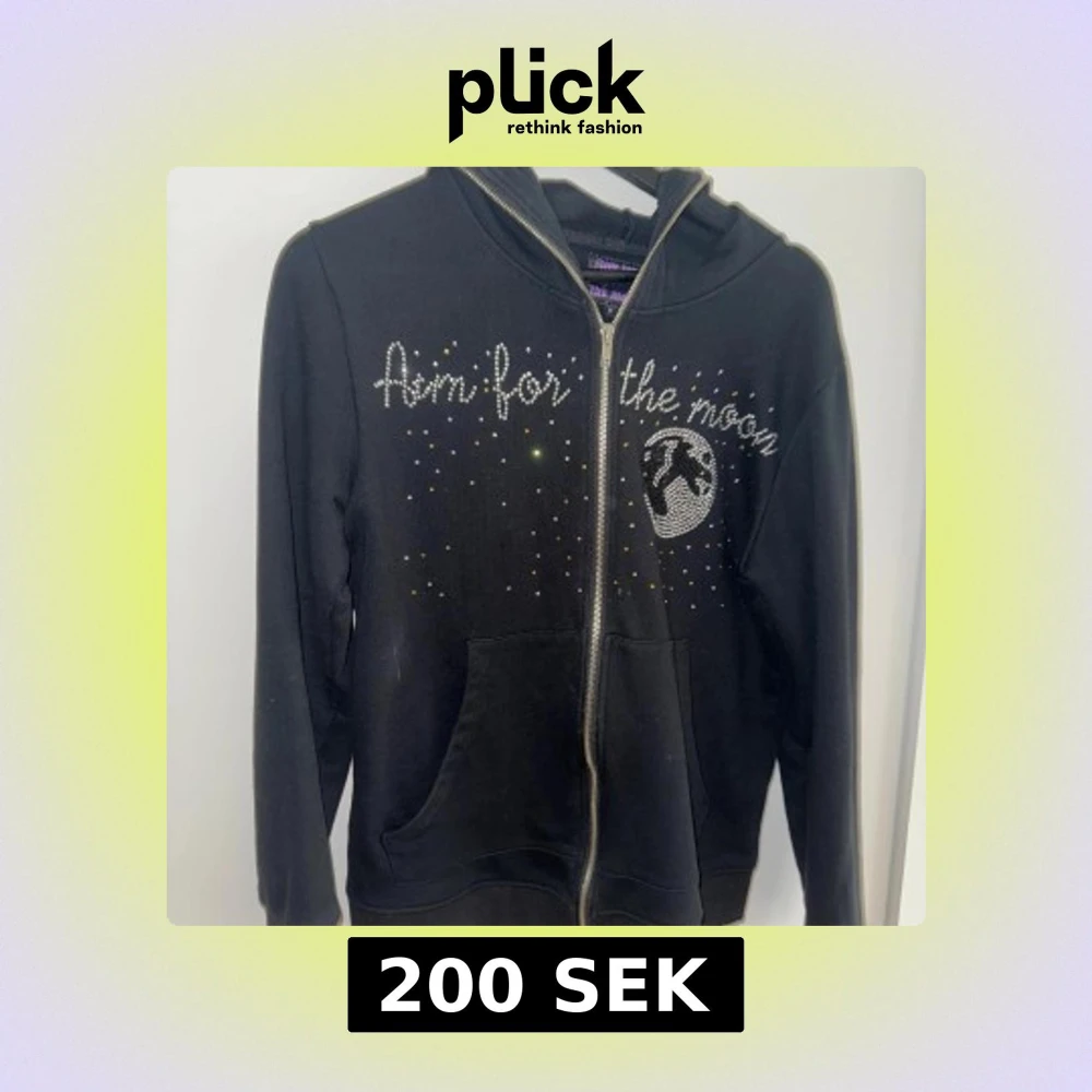 Svart hoodie med dragkedja och huva från Aim for the moon. Köpt här på plick men använt väldigt sällan. Väldigt bra skick, prisförslag är välkomna 😊