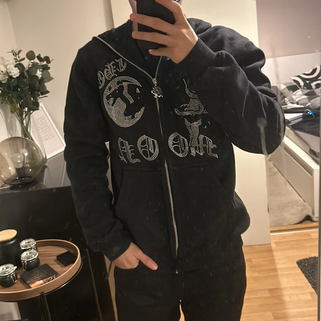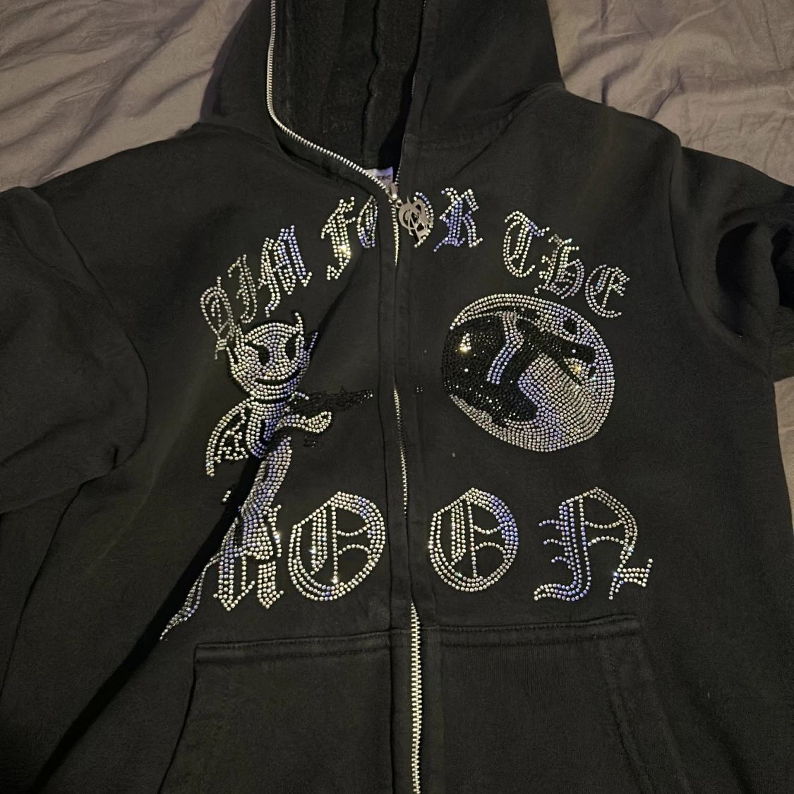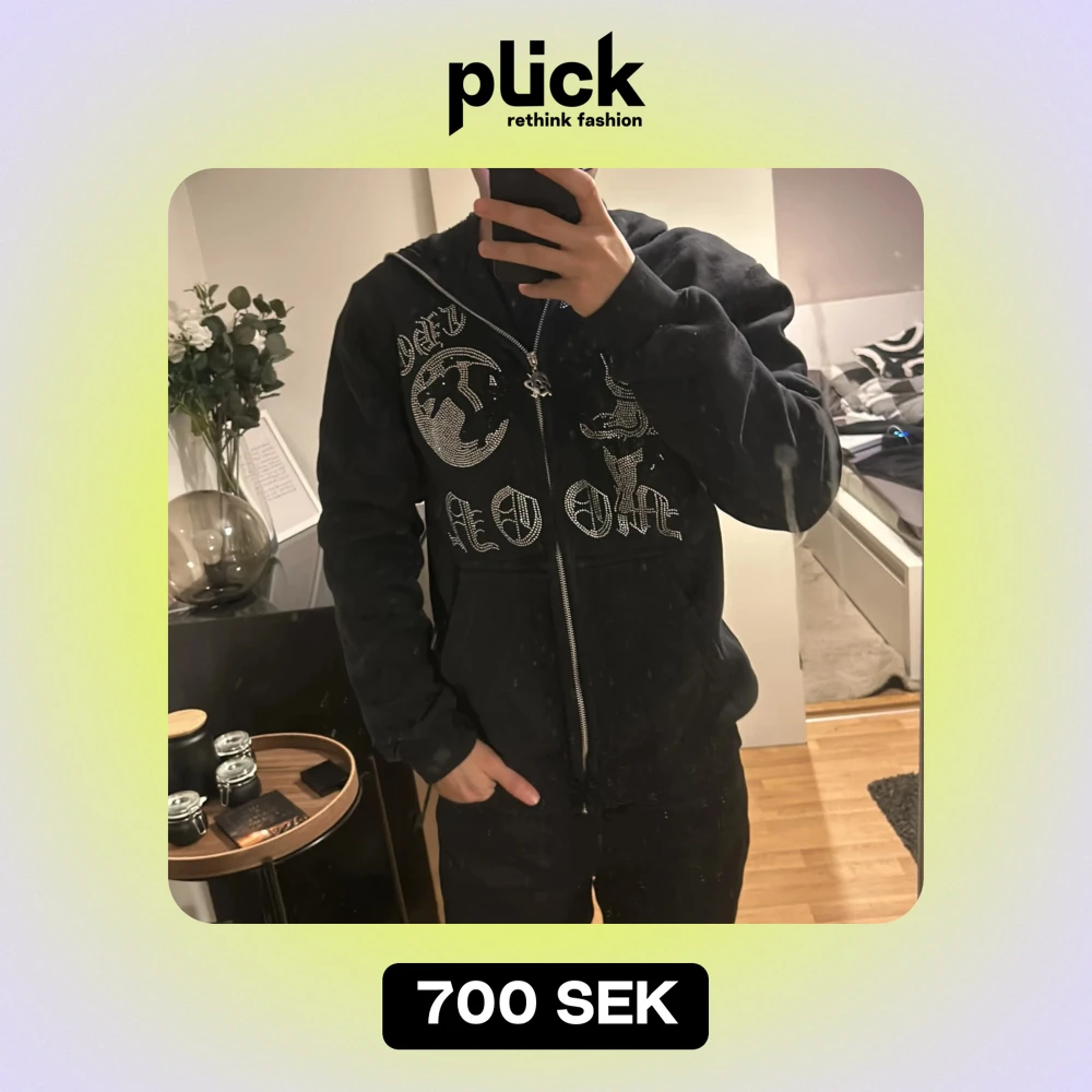 Dags att säger farväl till min svarta överligt snygga aim for the moon fullzip perfekt nu för hösten och den kyligare vintern då den är lite tjockare i tyget. Alla stenar förutom två tre stycken finns kvar inga defekter annars eller så. Den är köpt för 850 på deras sida (säljs inte många exemplar längre) storlek L men passar mycket mer som en M