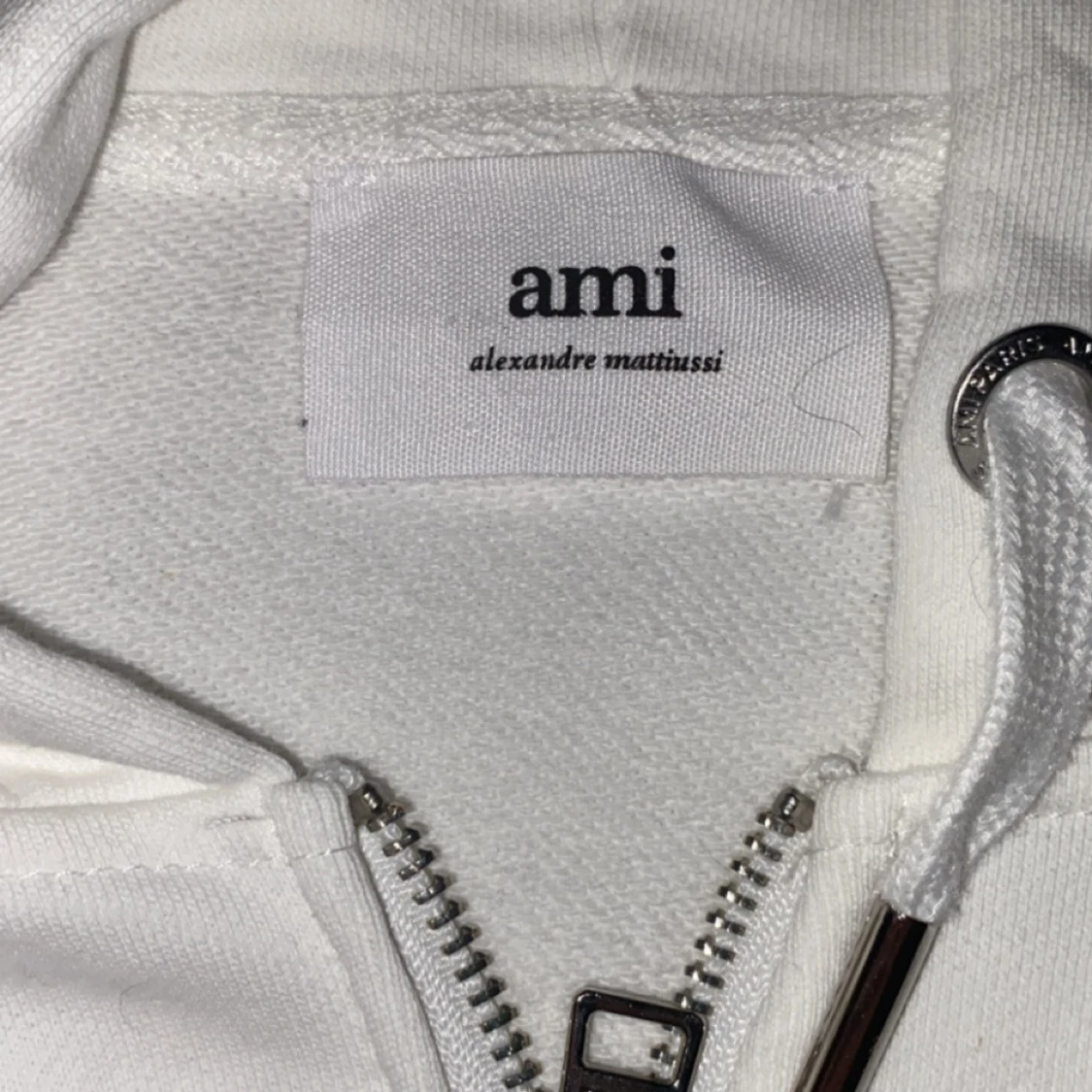 Hejsan Säljer denna ami Paris hoodie i vit (XL) sitter som (L) Inge fel på den, kvitto följs med