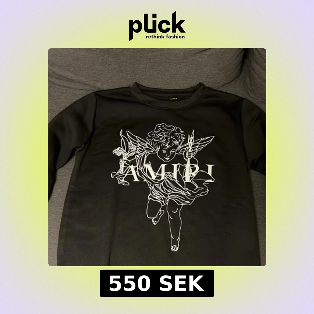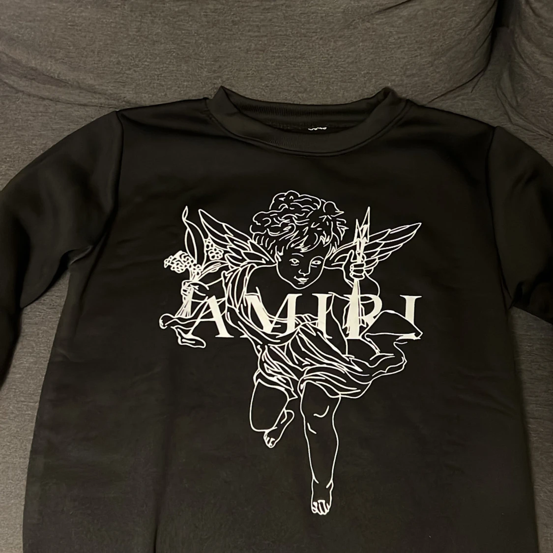 Svart sweatshirt från Amiri med stort vitt tryck av en tecknad ängel och logotyp på bröstet. Tröjan har rund halsringning och långa ärmar. Perfekt för dig som gillar streetwear med unik design. Dm för fler bilder.