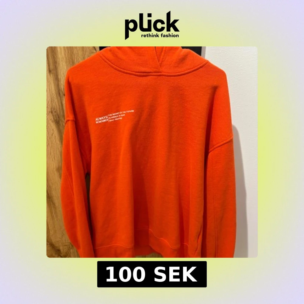 Säljer en klarorange hoodie från Amisu i storlek M. Tröjan har huva och en liten vit textdetalj på bröstet. Perfekt för dig som vill sticka ut med färg. Mjuk och skön, passar till många tillfällen.