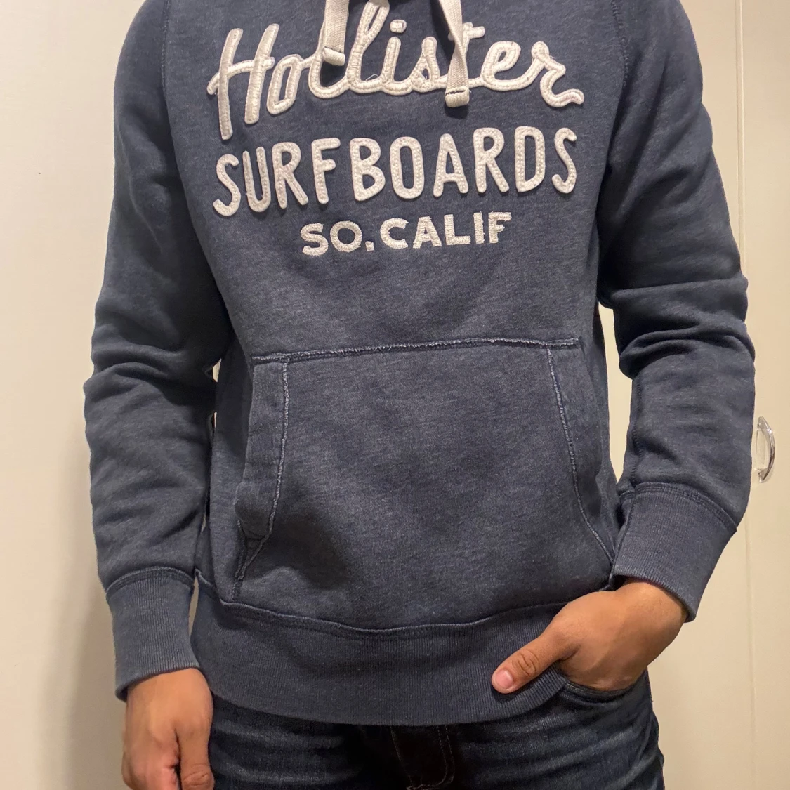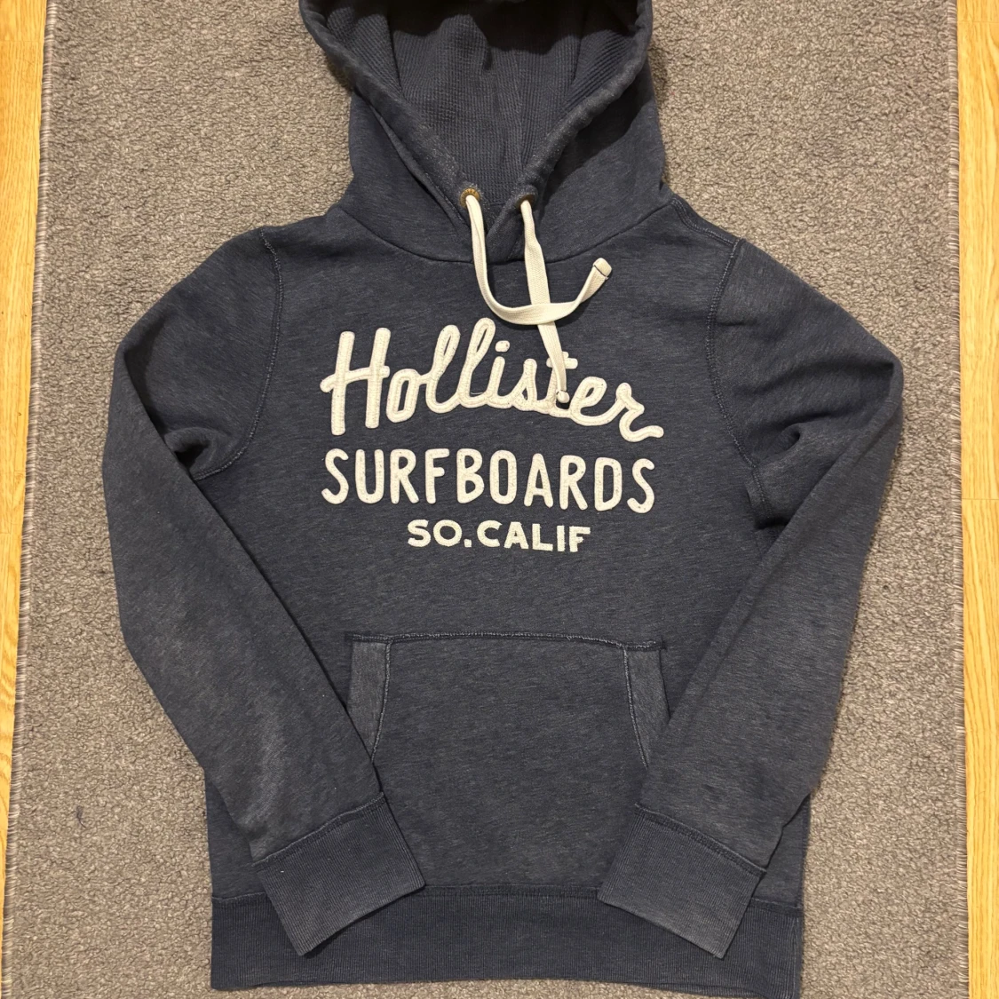 Vintage och sällsynt Mörkblå Hoodie från Hollister med vit text på bröstet och klassik kängauruficka | Storlek M | Vintage och extremt svår att finna! |Går ner i pris vid snabbt köp! | Är 175, väger 70kg men denna är för stor på mig, (passar dig 180-185) | Längd 67cm, Bredd 55cm |Hör av vid ytterligare frågor!!!
