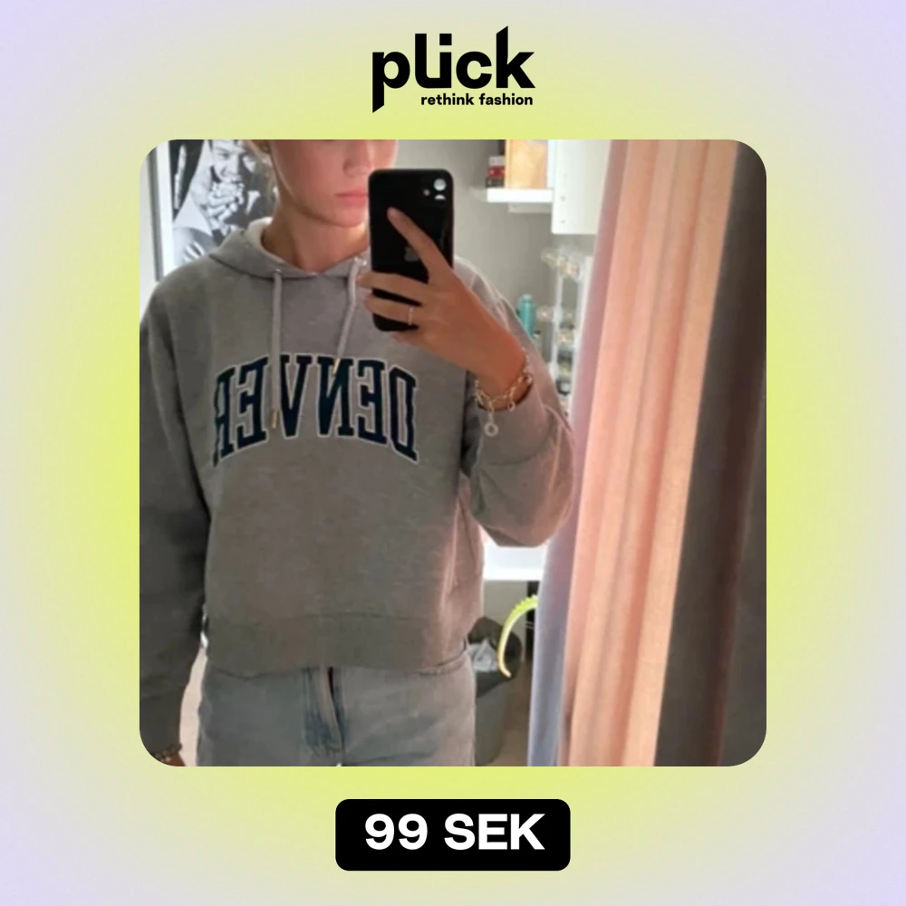 Säljer en superbekväm grå hoodie med texten 'DENVER' i mörkgrönt på framsidan. Den har en klassisk passform med långa ärmar och en justerbar huva med snören. Perfekt för en avslappnad stil eller mysiga dagar hemma. 🩶