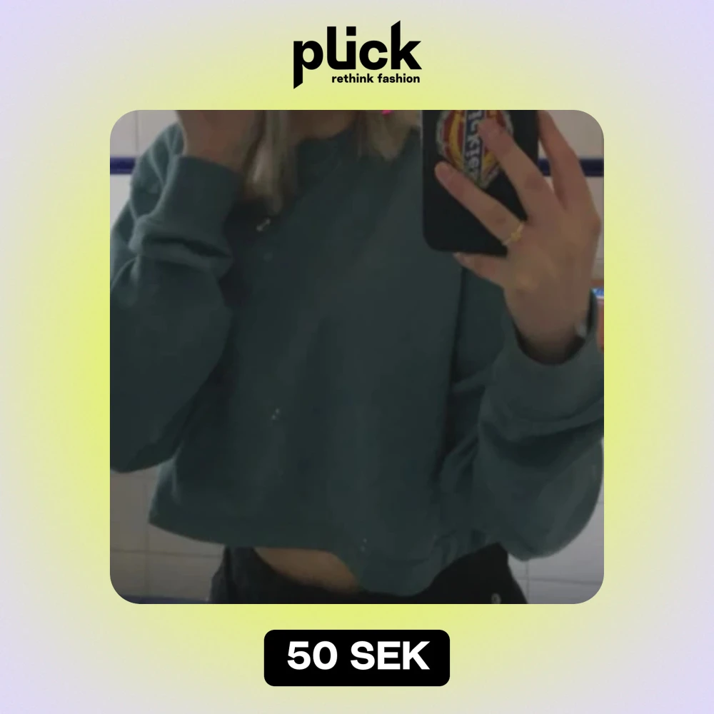 Croppad blå/grön sweatshirt från missguided i strl xs