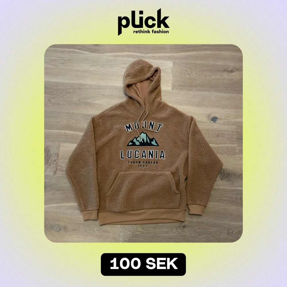 Mysig brun fleece hoodie med texten 'Mount Lucania Yukon Canada 1897' tryckt på framsidan. Perfekt för kalla dagar med sin varma och fluffiga känsla. Den har en stor huva och ribbade muddar vid ärmslut och nederkant. Perfekt för höst och vinter!