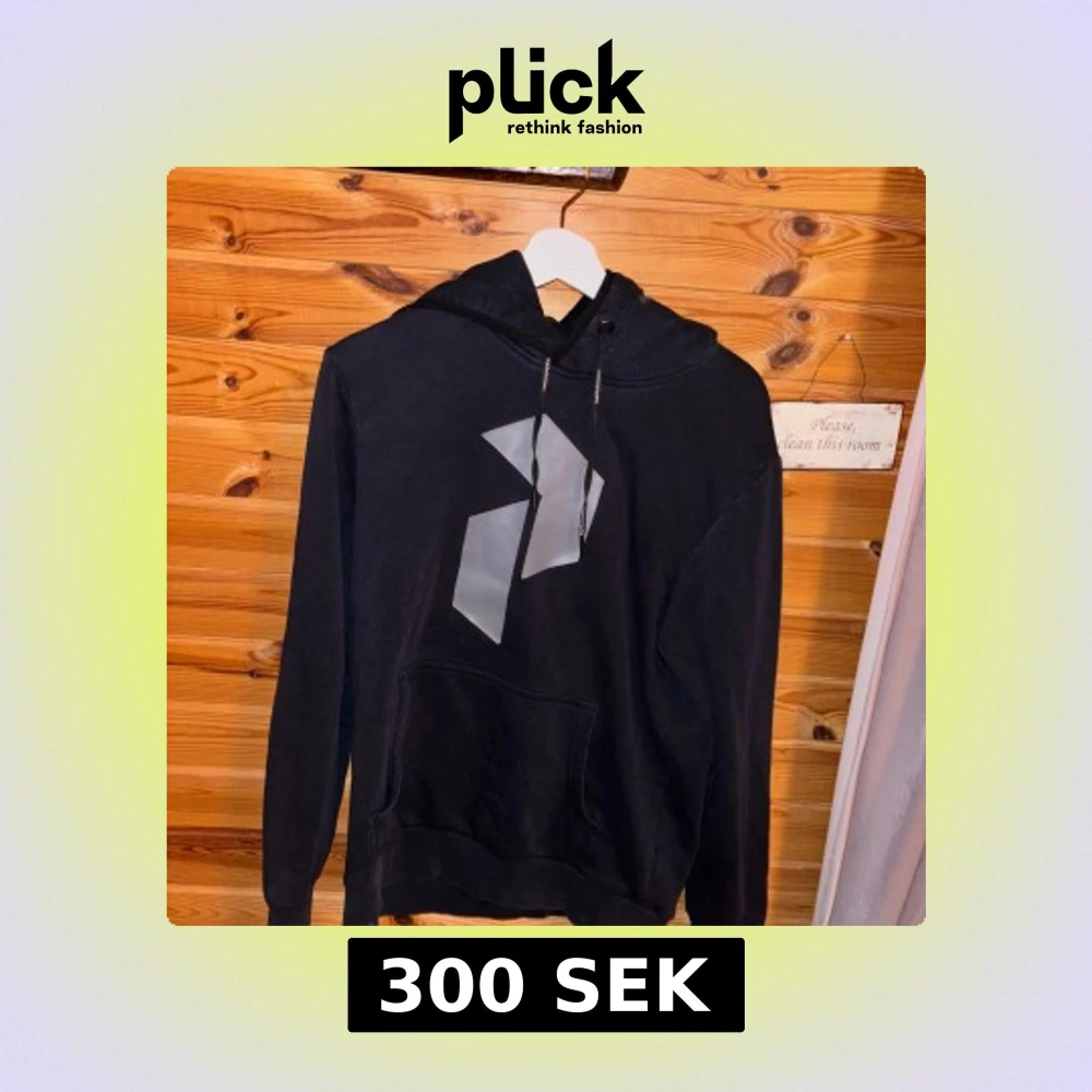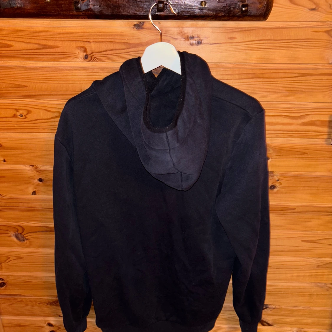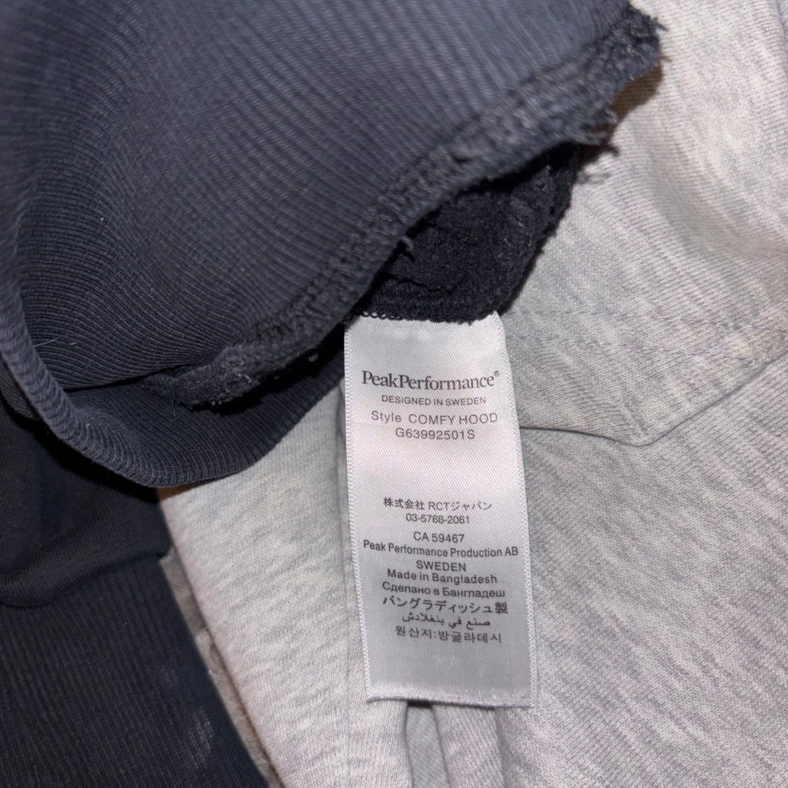 Säljer en svart hoodie från Peak Performance med en stor ficka framtill och en stilren logga i grått på bröstet. Nån fläck på ryggen men inget som inte går bort i tvätten😁