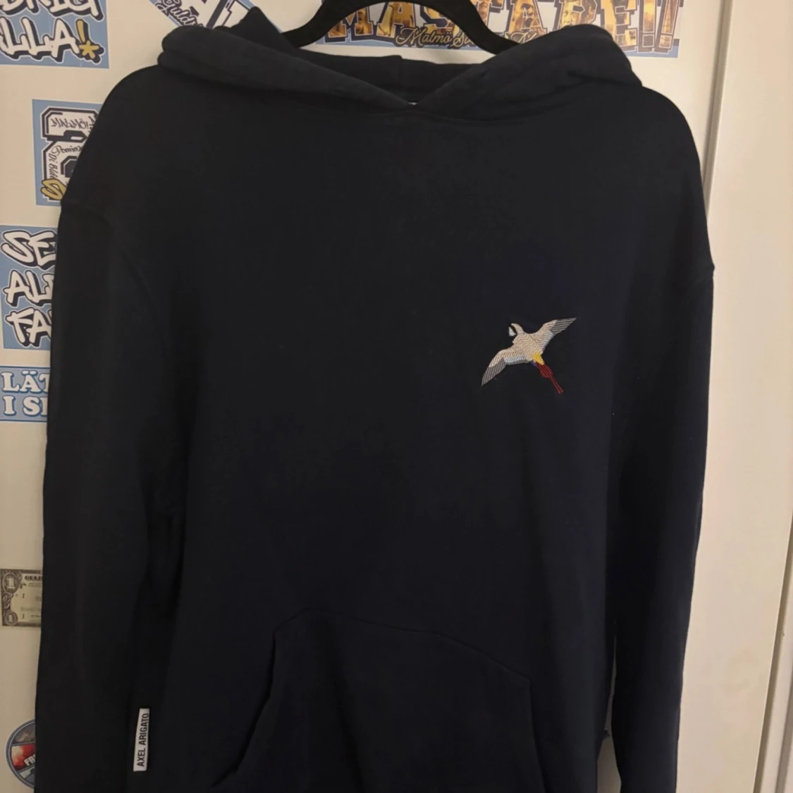 Säljer nu denna axel arigato hoodie för att den är förliten för mig! Köpt för ca 1,5 år sedan men använd fåtal gånger! Nypris1500kr pris går att diskuteras!