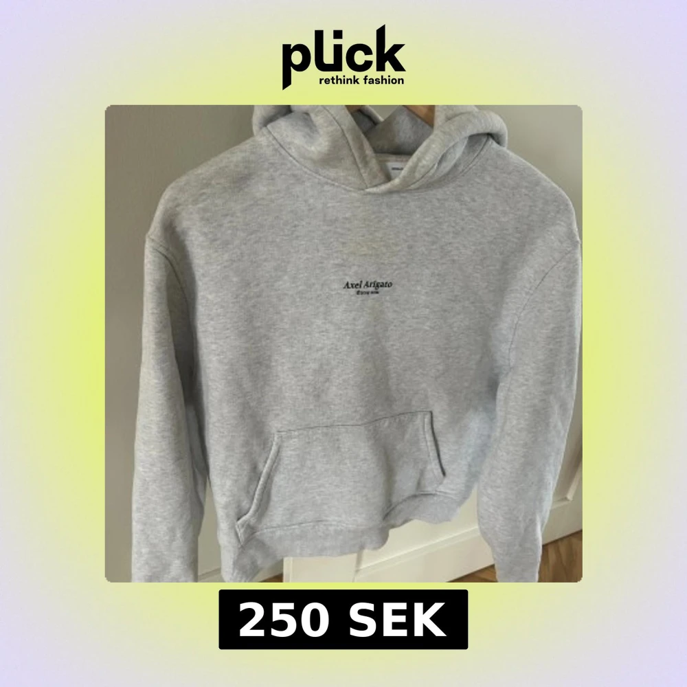 Snygg grå hoodie från Axel Arigato med svart logotyptryck på bröstet. Tröjan har huva, magficka och ribbade muddar vid ärmslut och nederkant. Perfekt för chill dagar och streetwear-stil.